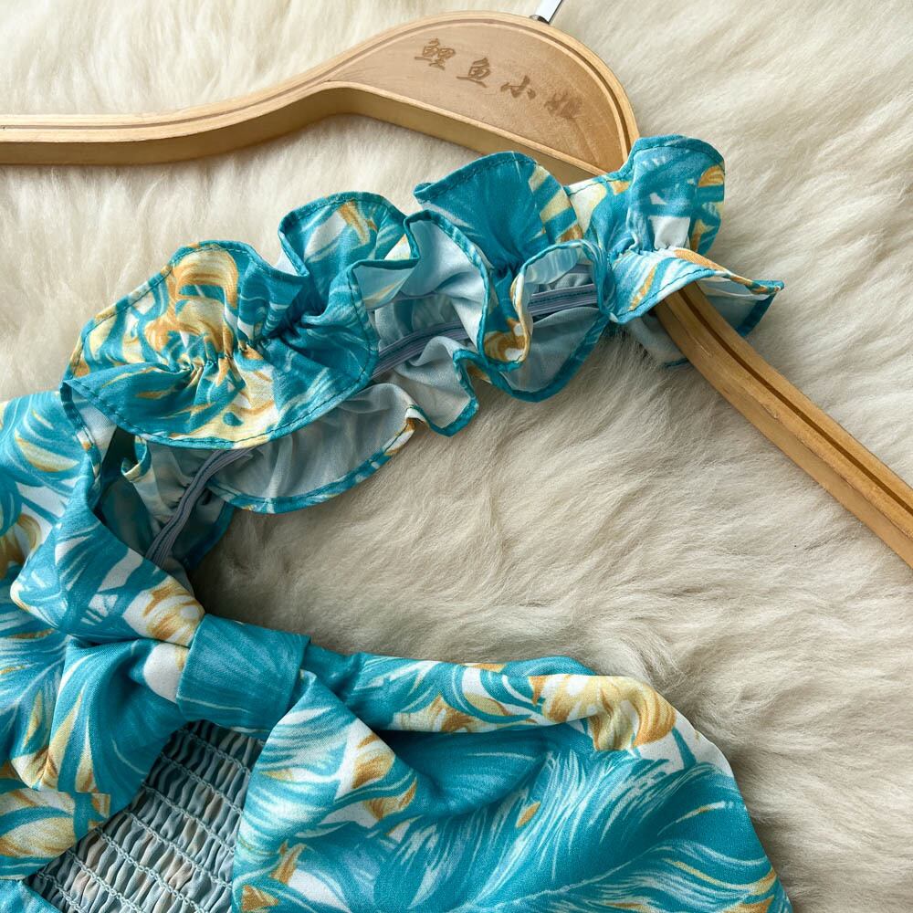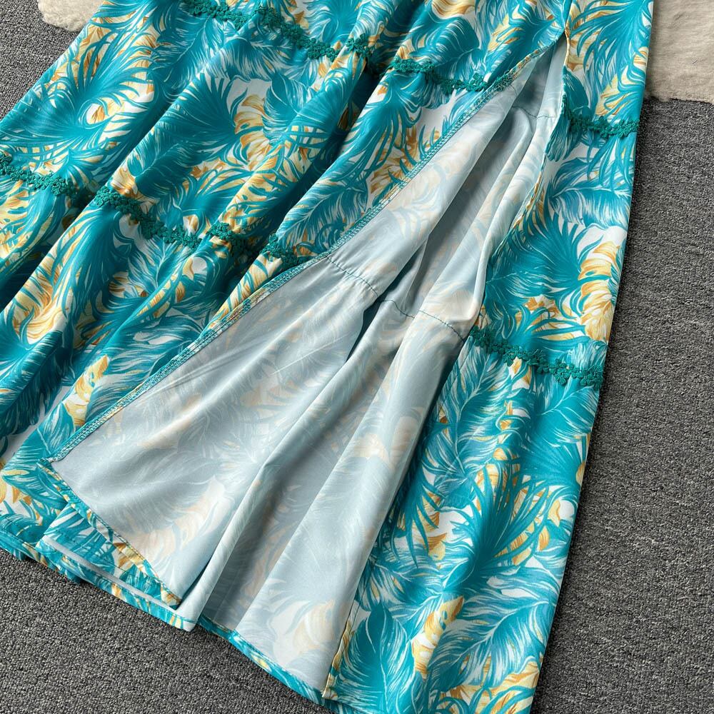 夏の欧米風のプリントスーツの女性のショートチューブトップワンショルダーサスペンダートップ+スリットスカートツーピーストレンディ サマー 夏物 ヨーロピアン lyxaj79300816256