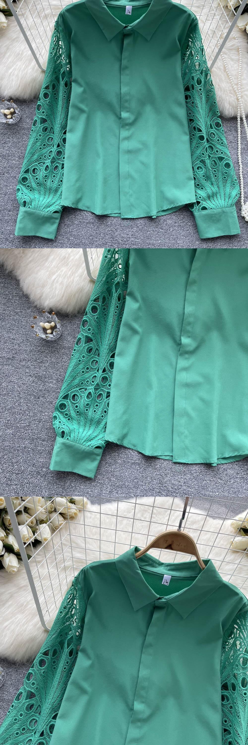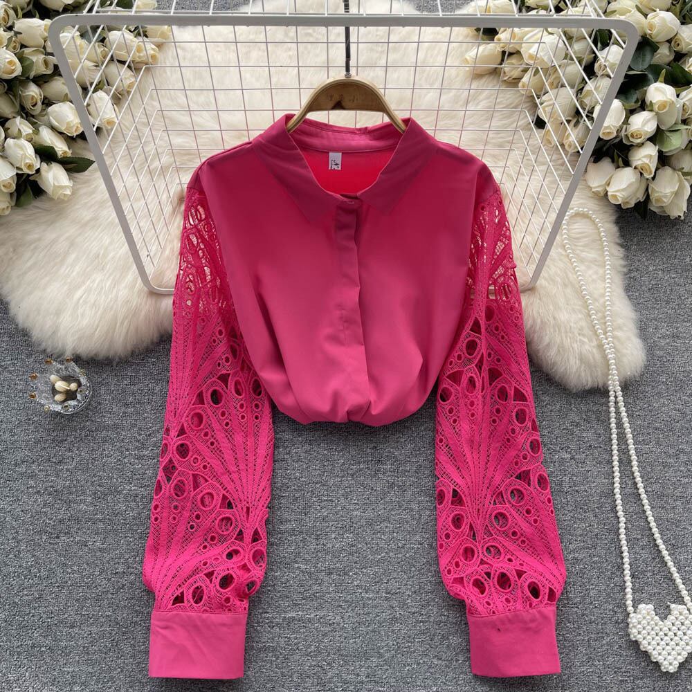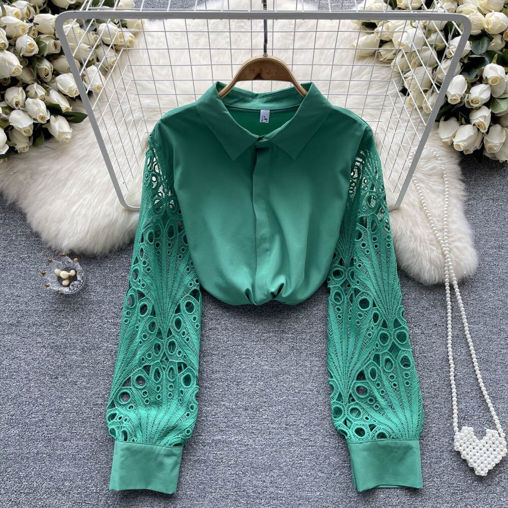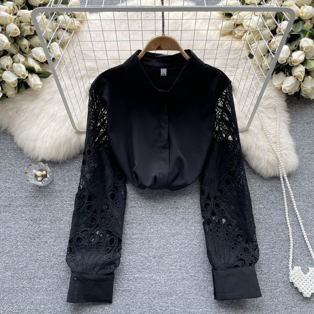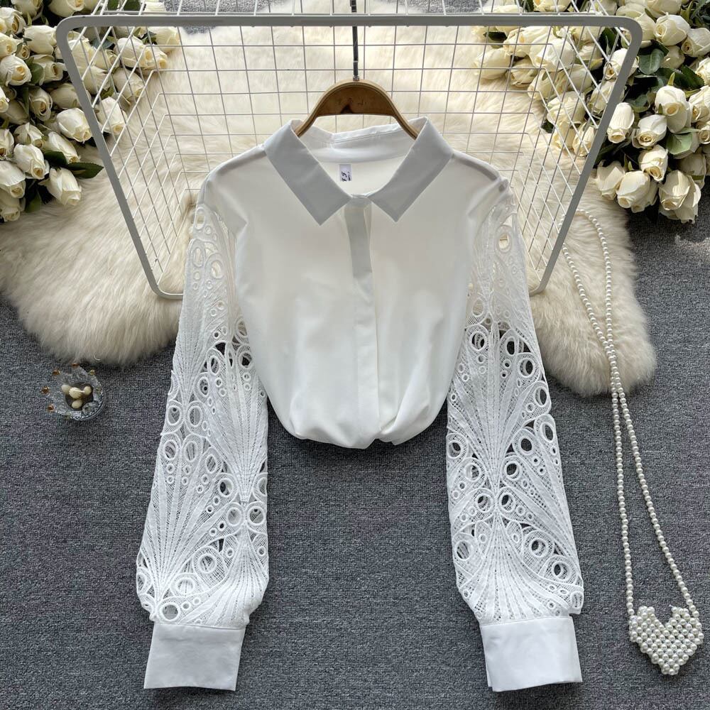 センスニッチ中空アウト長袖シャツトップ 2022 年秋新セレブ気質オールマッチ白シャツ女性 ロング ホワイト オータム 秋物 lyxaj17148826890