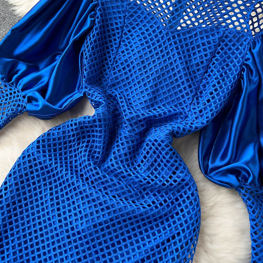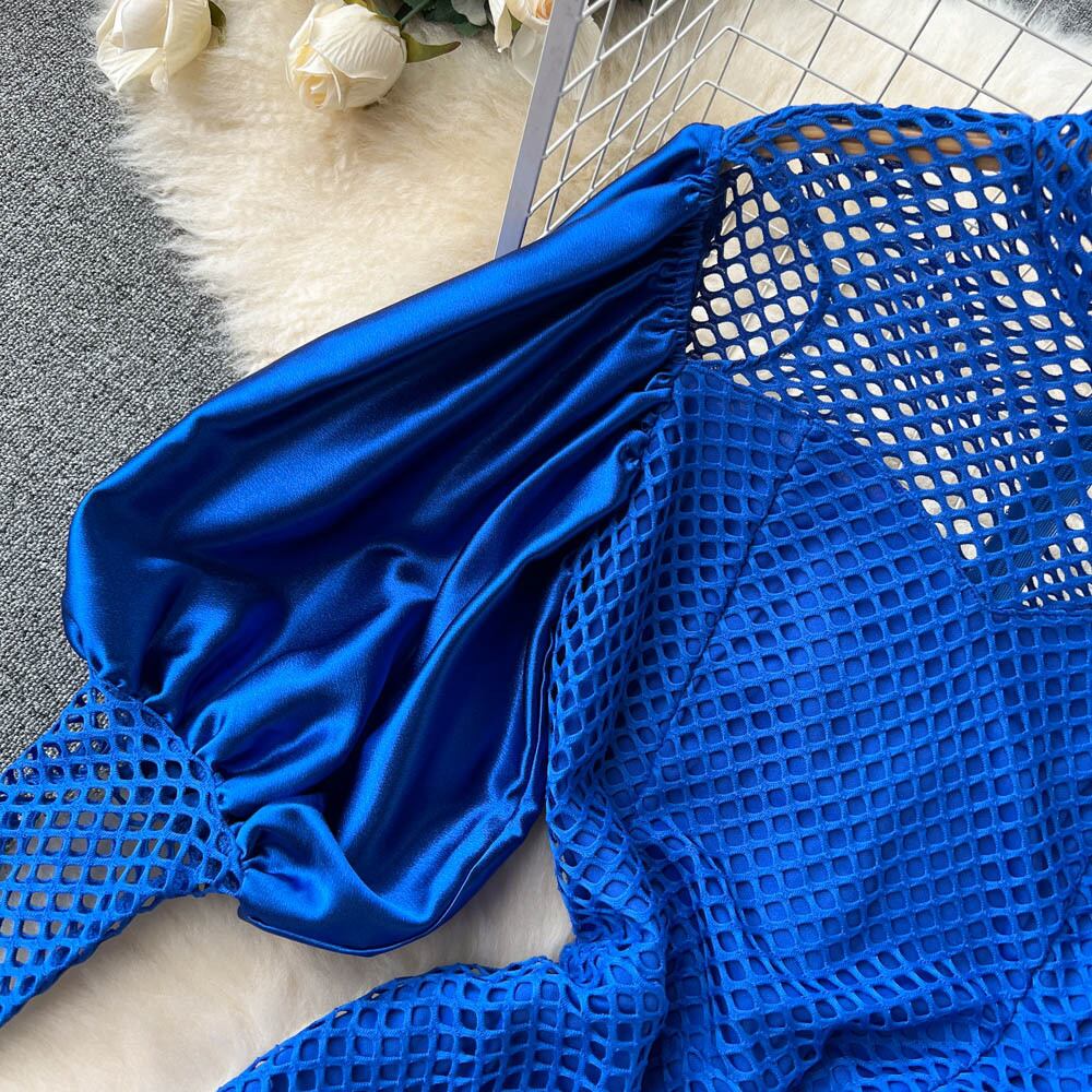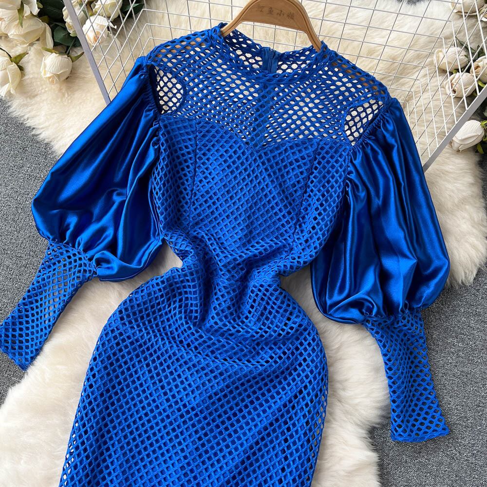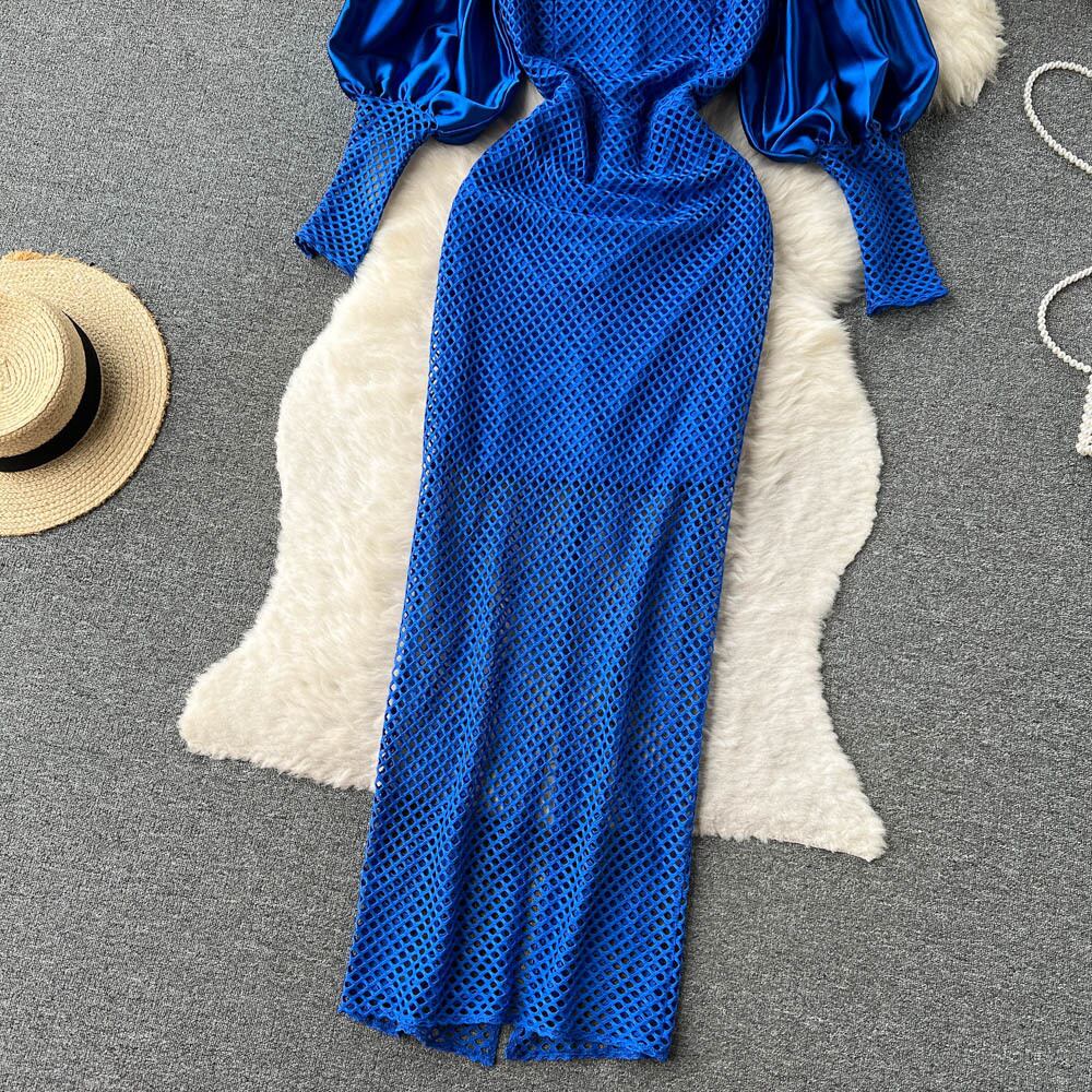 ヨーロッパとアメリカのイン スタイルのデザイン センス ニッチ中空ランタン スリーブ ドレス女性のウエスト バッグ ヒップ スリット eign スタイル ロング スカート ランタンスリーブ ヨーロピアン lyxaj42314275142