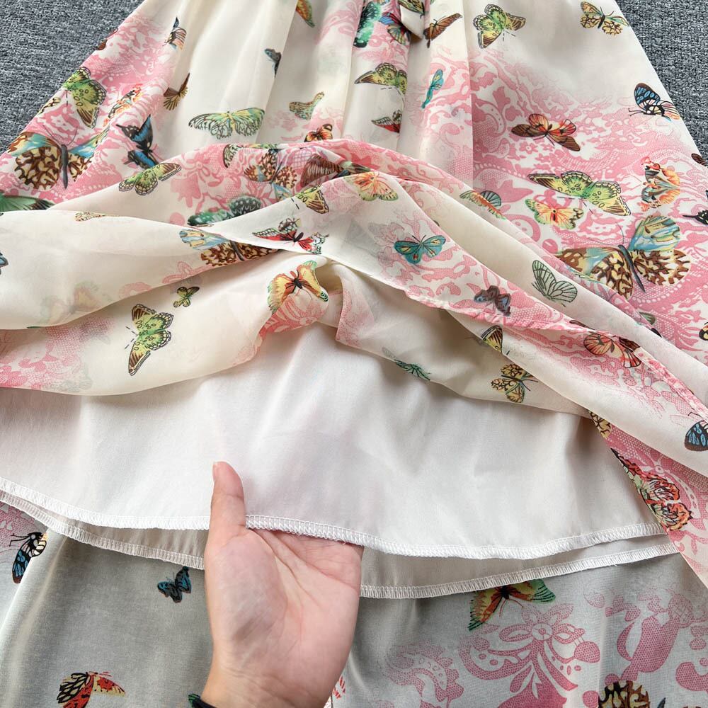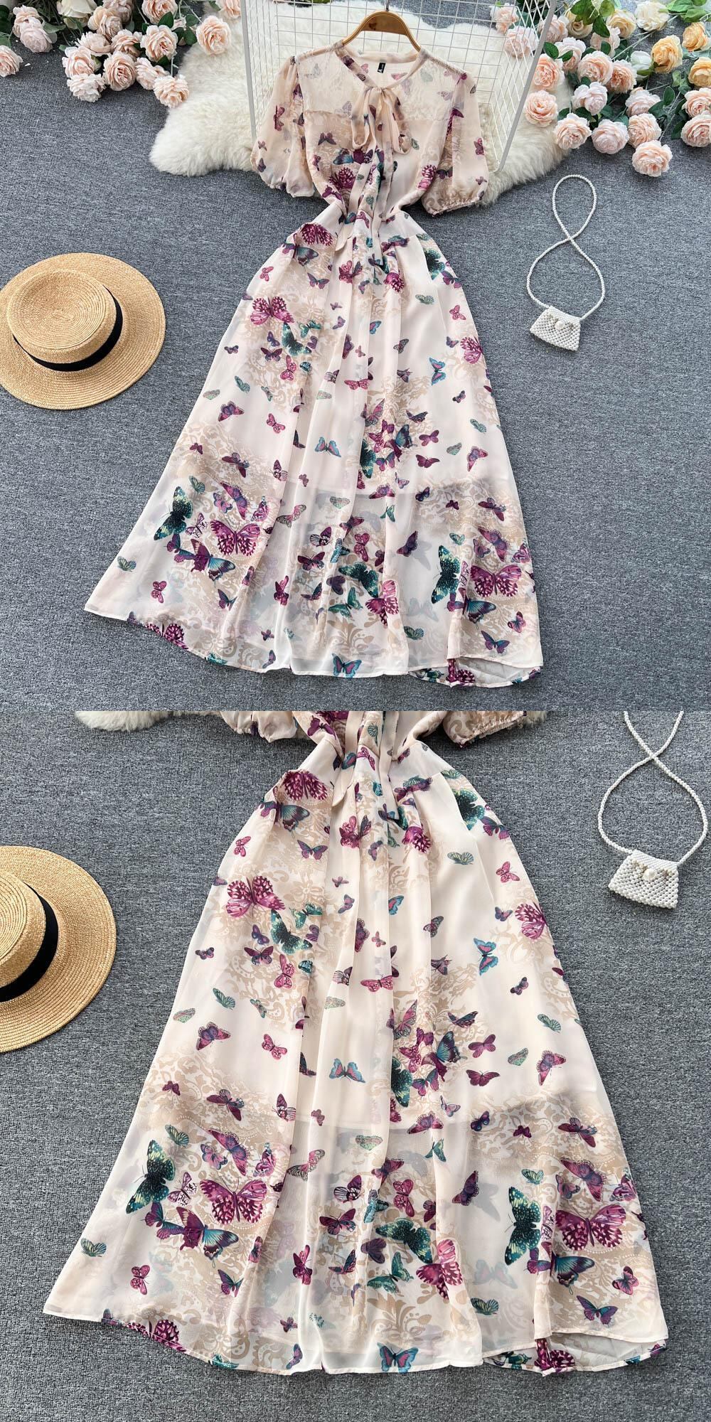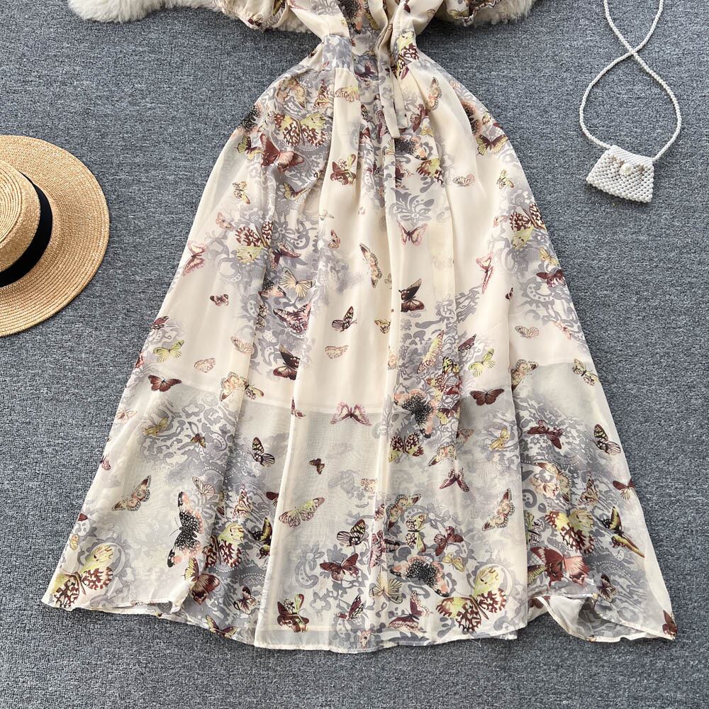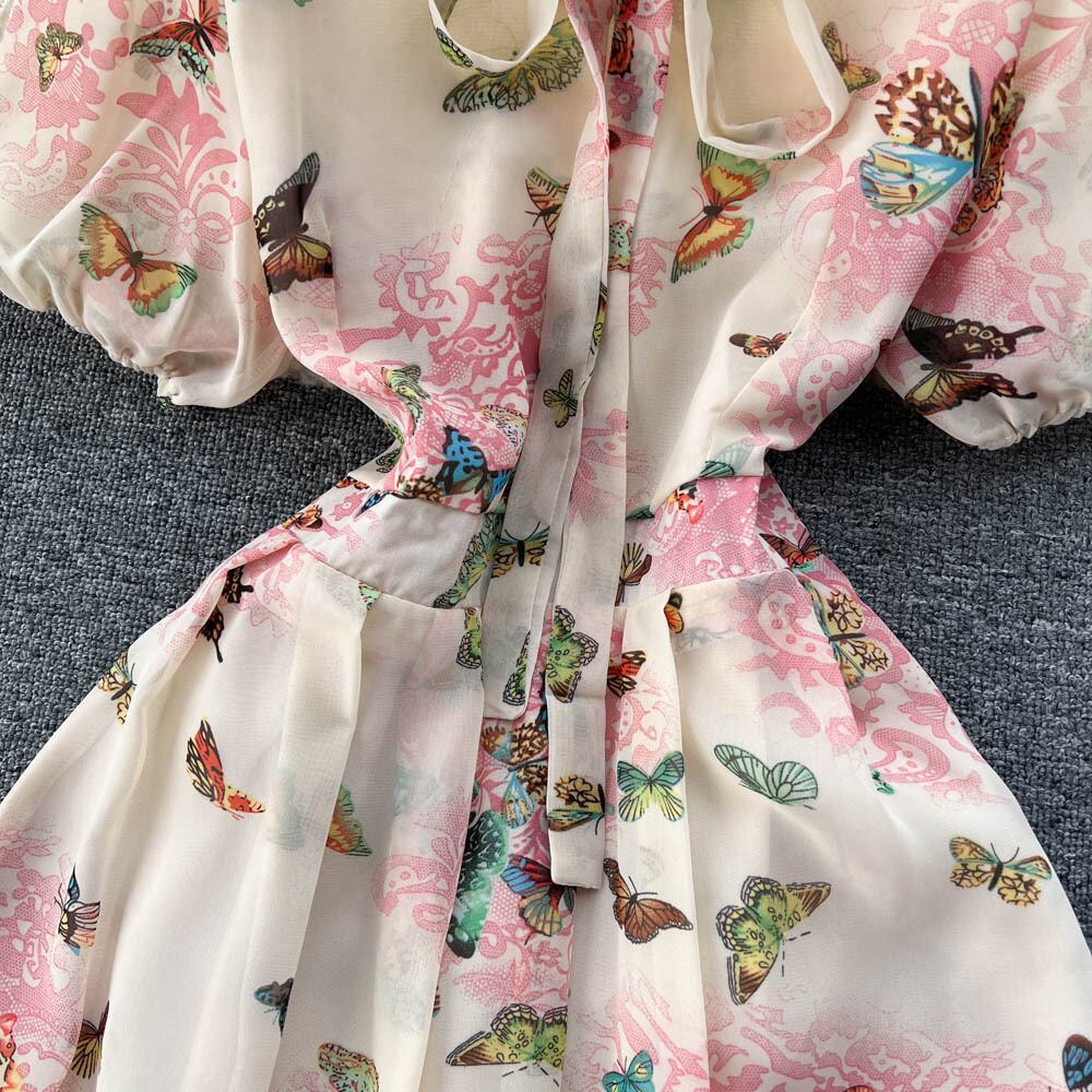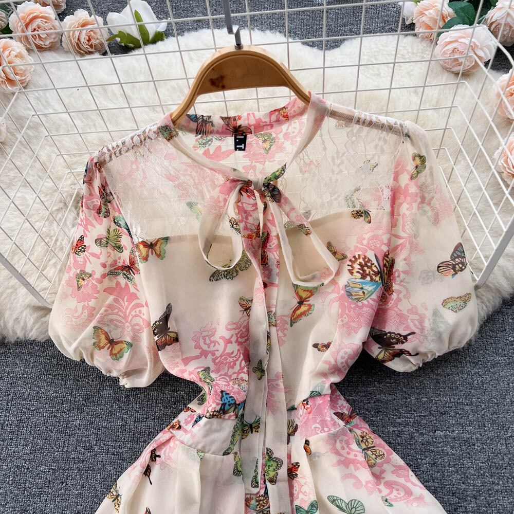 フランスの甘いパフ スリーブ ドレス夏の新しい小さな花柄のドレス女性の腰の甘くてスパイシーなスカート 大人ガーリー スウィート キュート カジュアル サマー 夏物 lyxaj32139578005