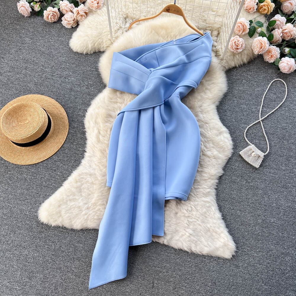 サマーセンスイレギュラーワンラインネックチューブトップストラップ服ウエストバッグヒップ気質イブニングドレスワンピーススカート 夏物 lyxaj67063095714