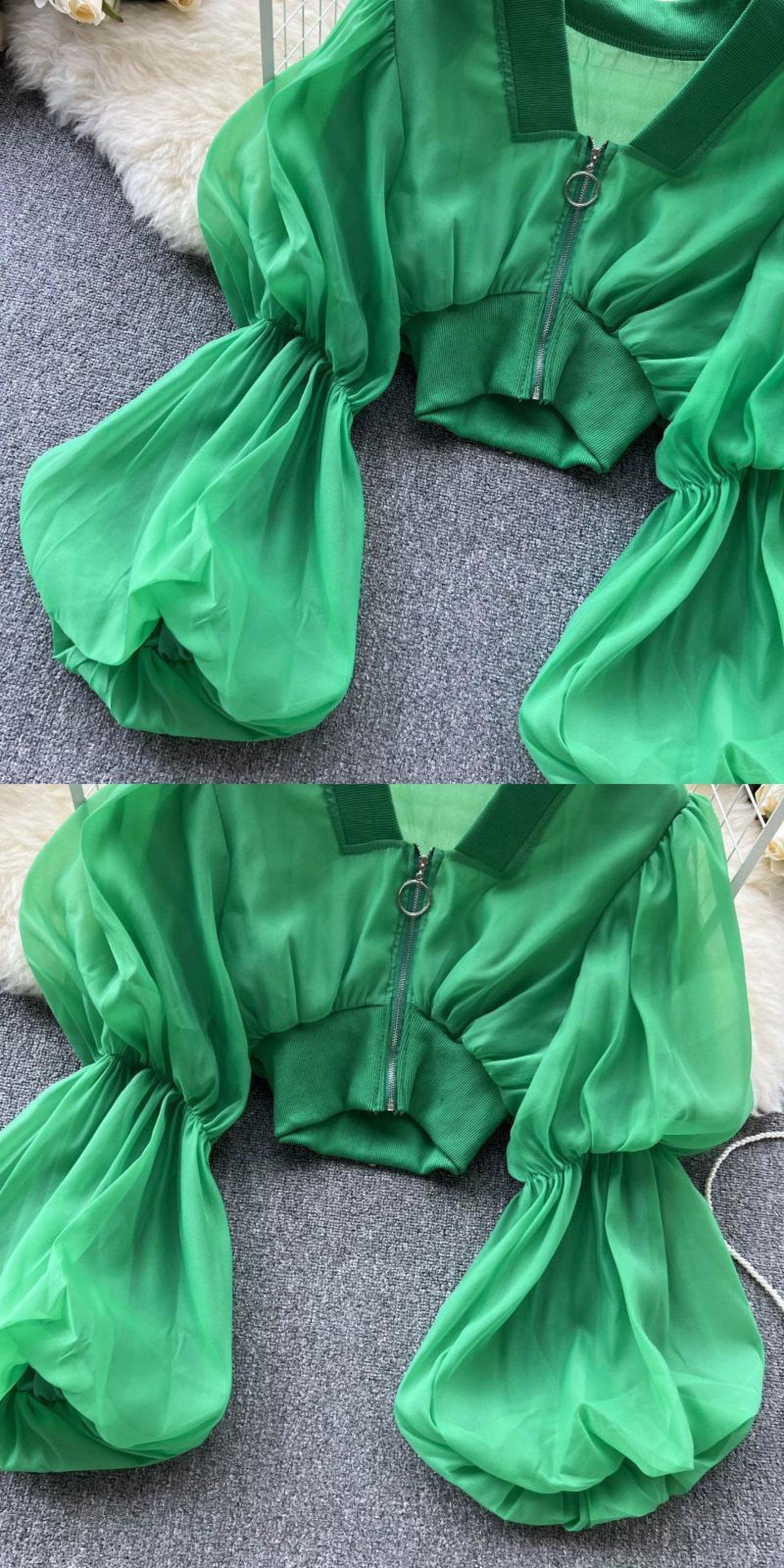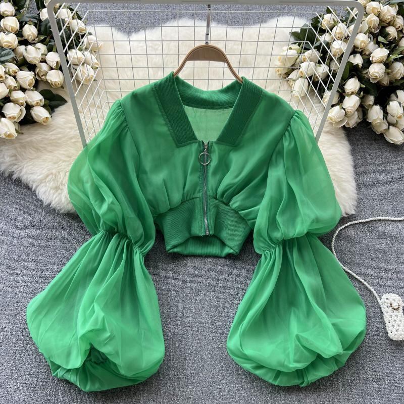 フランスの有名人気質ニッチ デザイン センス ランタン スリーブ シフォン シャツ女性秋バージョン ウエスト ショート シャツ トップ ランタンスリーブ オータム 秋物 lyxaj36929949941
