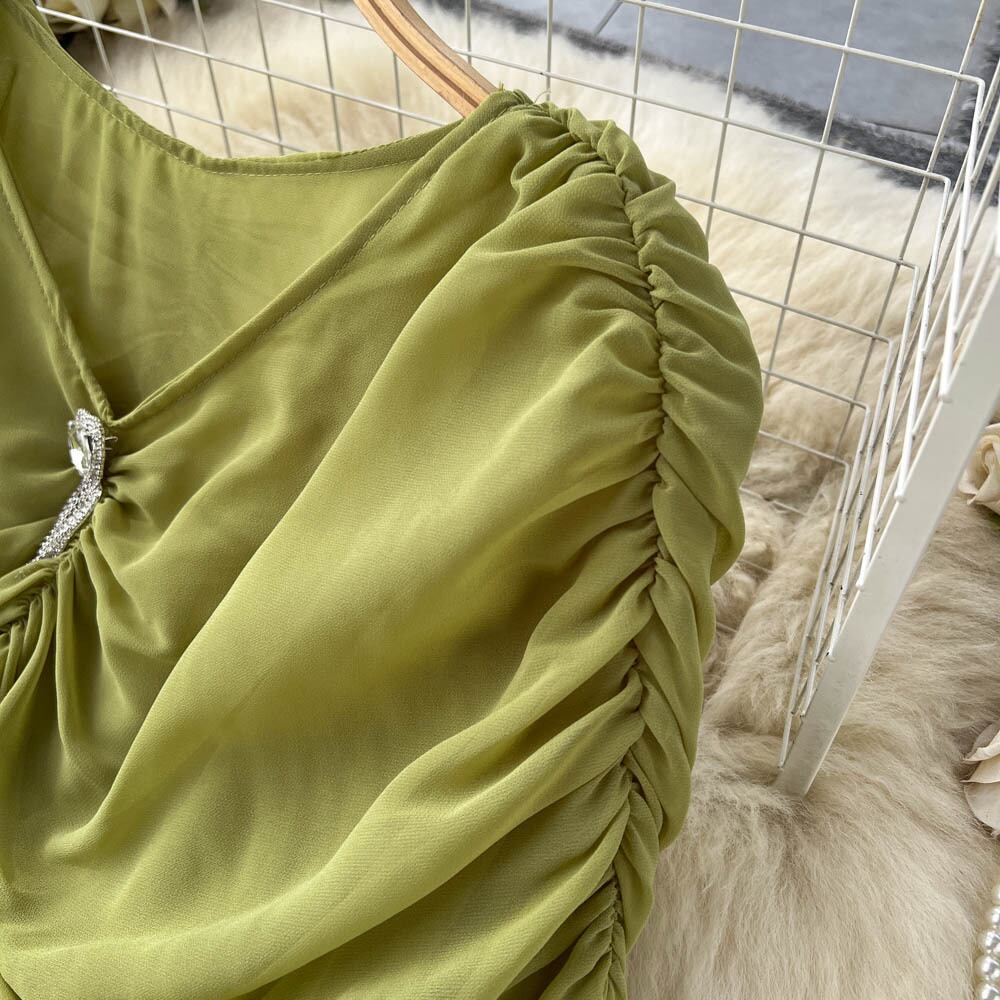 春夏秋冬スタイルフレンチ初恋スイートドレスレディースデザインセンスプリーツVネックニッチイレギュラーショートスカート 大人ガーリー スウィート キュート カジュアル スプリング 春物 サマー 夏物 lyxaj74168007402