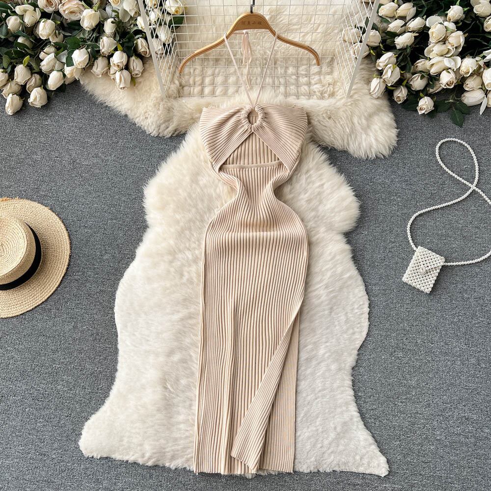 春夏気質 セレブ 吊り下げネック 中空チューブトップ バッグ ヒップ ロングスカート 女性 タイト セクシー オープンバック スリット ニット ロングスカート スプリング 春物 サマー 夏物 lyxaj62331554329