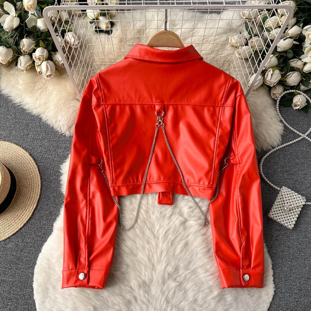 秋と冬のファッション PU レザージャケット女性 2022 秋のシングルブレストラペルショートオートバイのジャケットトップス オータム 秋物 ウィンター 冬物 lyxaj57912200053