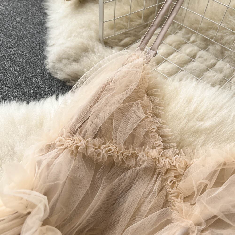 フレンチヘップバーンスタイル初恋サスペンダードレス女性の夏のスーパー妖精レトロ甘いセクシーなメッシュシフォンプリンセスドレス 大人ガーリー スウィート キュート カジュアル サマー 夏物 lyxaj9299147844