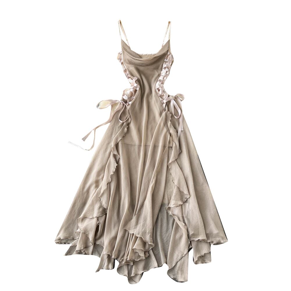フレンチデザインセンスストラップフリルハイエンドセンスフェアリードレス女性ウエスト不規則なスカートイブニングドレススカート ラッフル lyxaj52867673866
