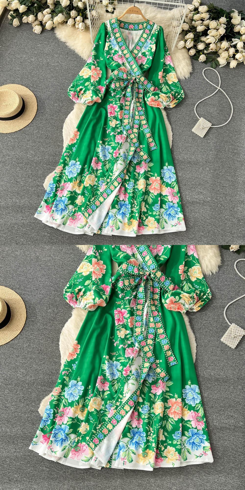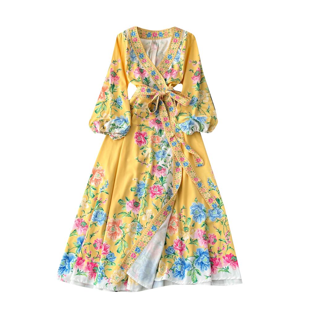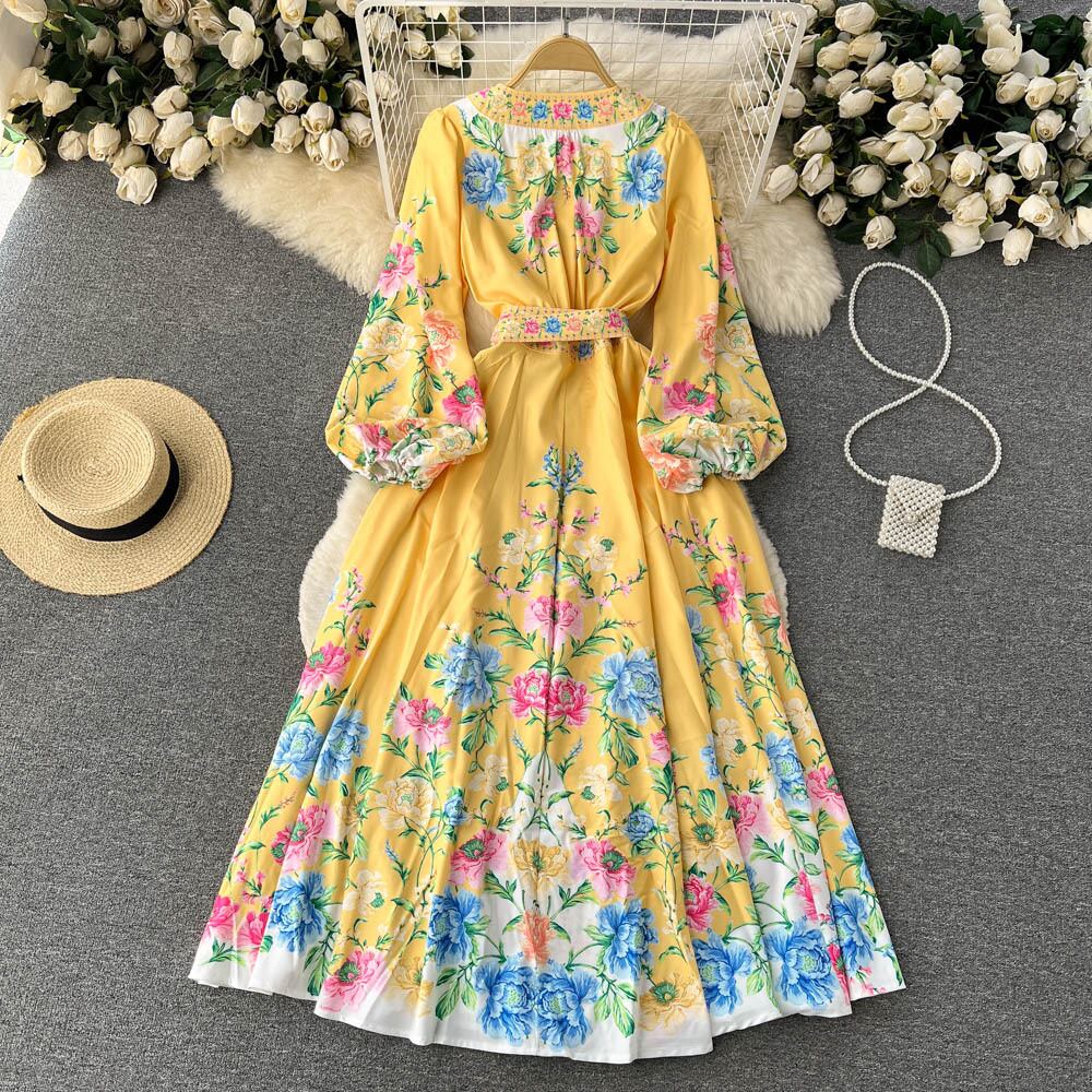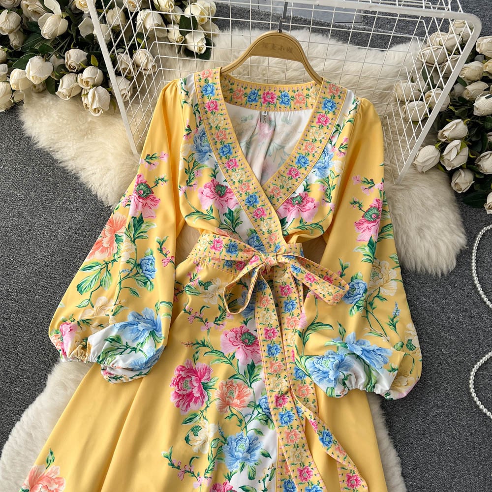 レトロフレンチコートスタイルの春秋バージョンのパフスリーブドレスレディースVネックルーズスリムウエスタンスタイルオールマッチAラインスカート スプリング 春物 オータム 秋物 lyxaj13245177847