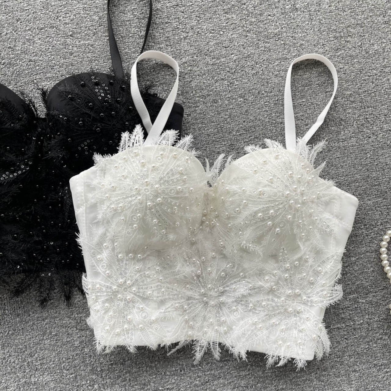 ピュアデザイストスタイルセクシースモールスリング女性デザインセンス重工業ビーズチェストパッド付き美バックショートチューブトップトレンディ lyxaj19396397719
