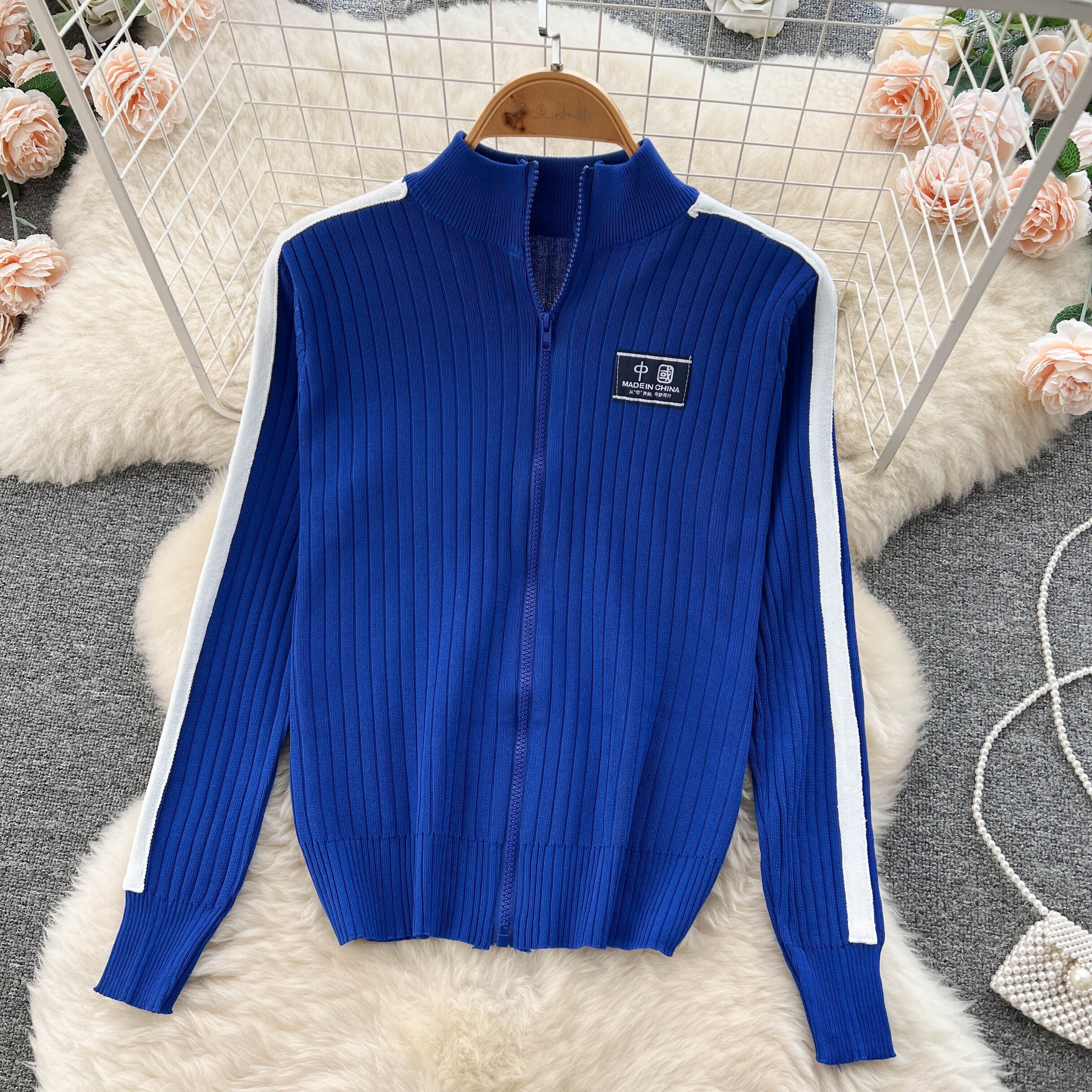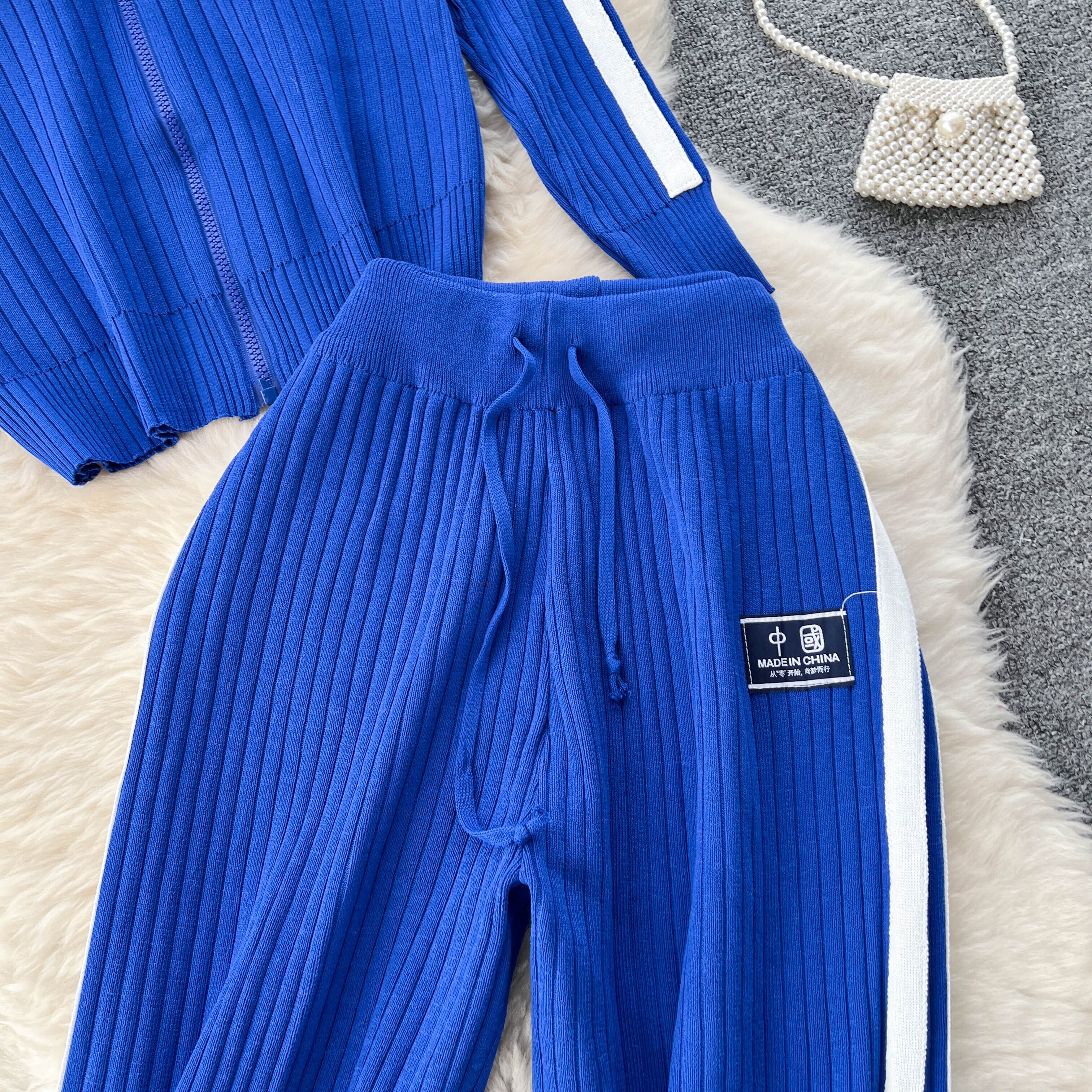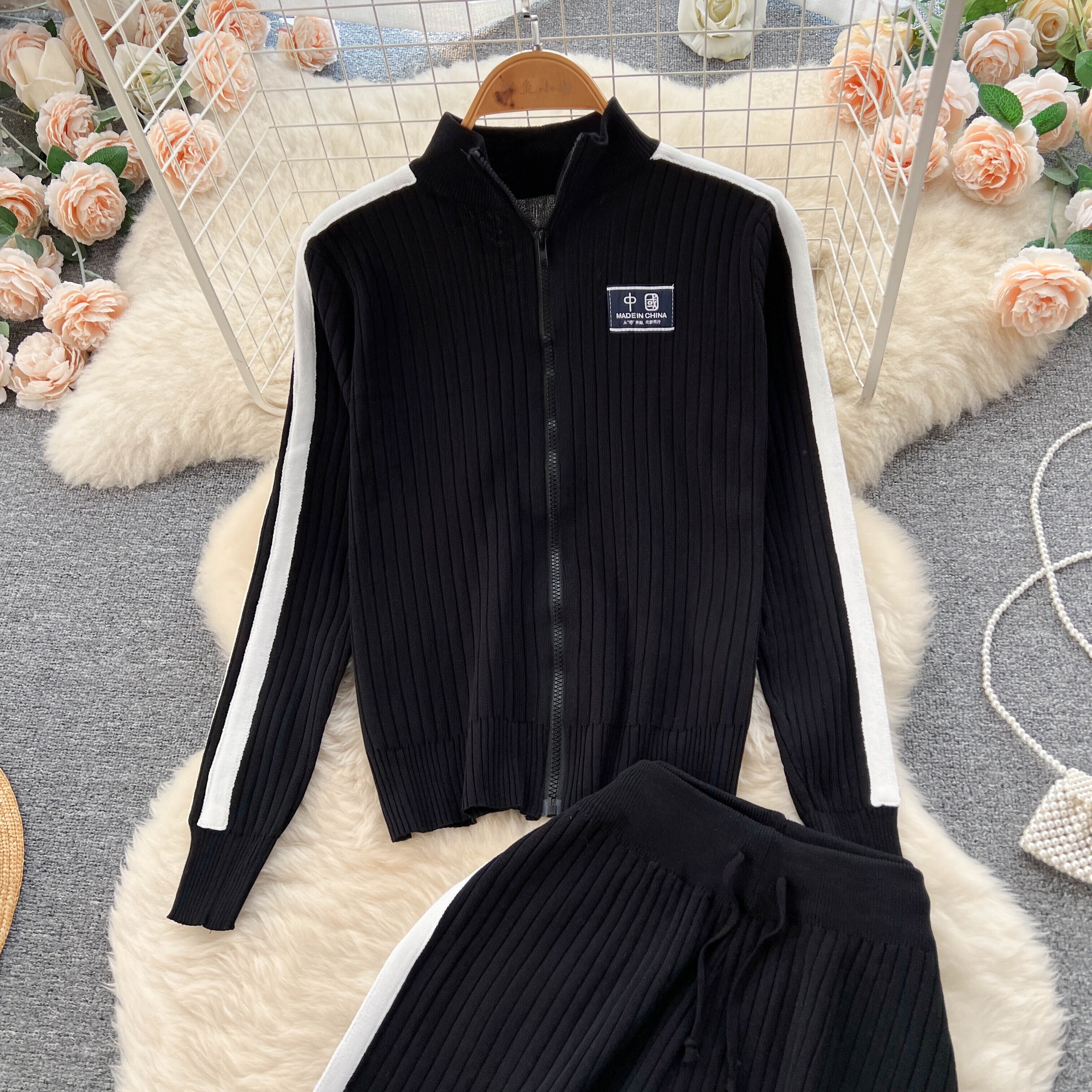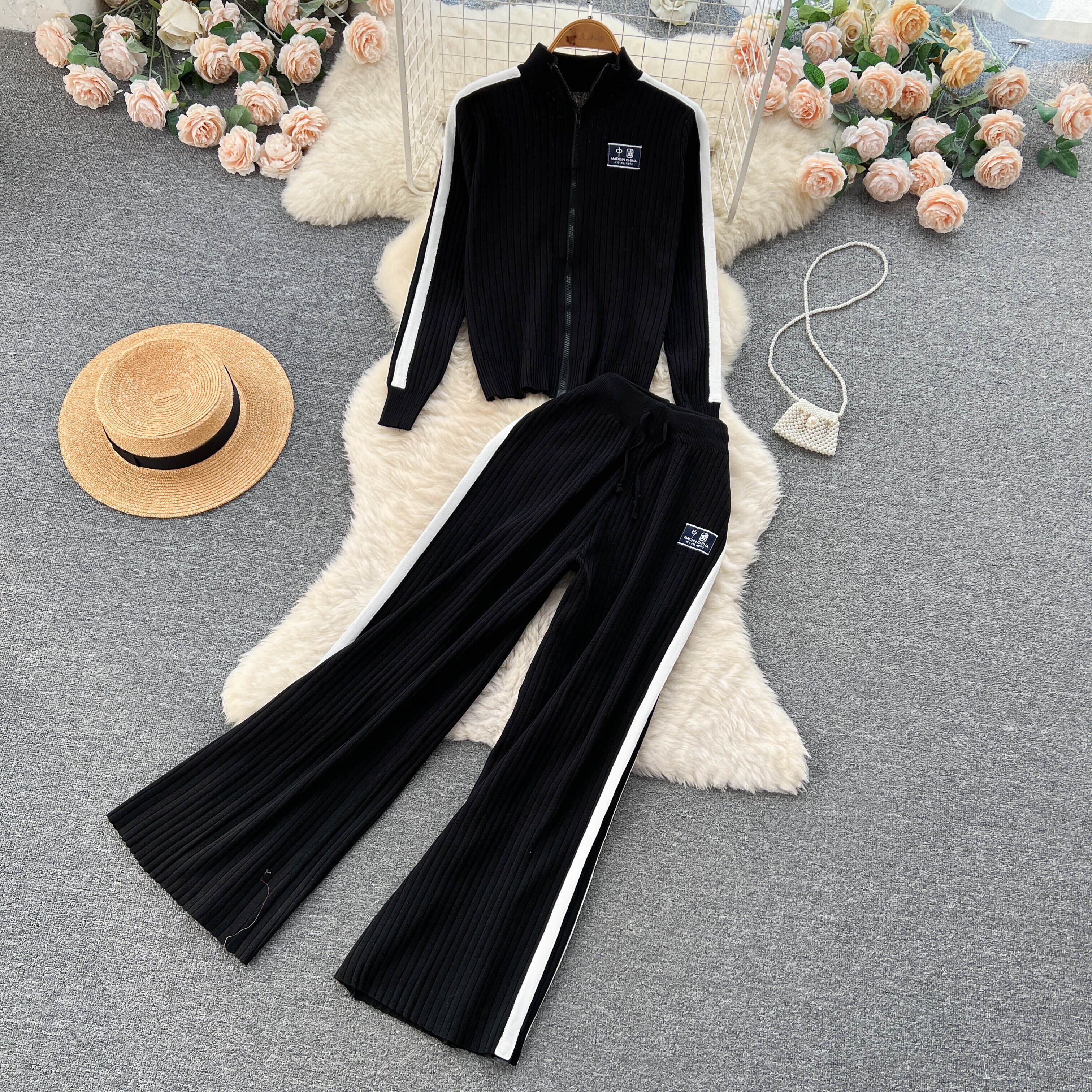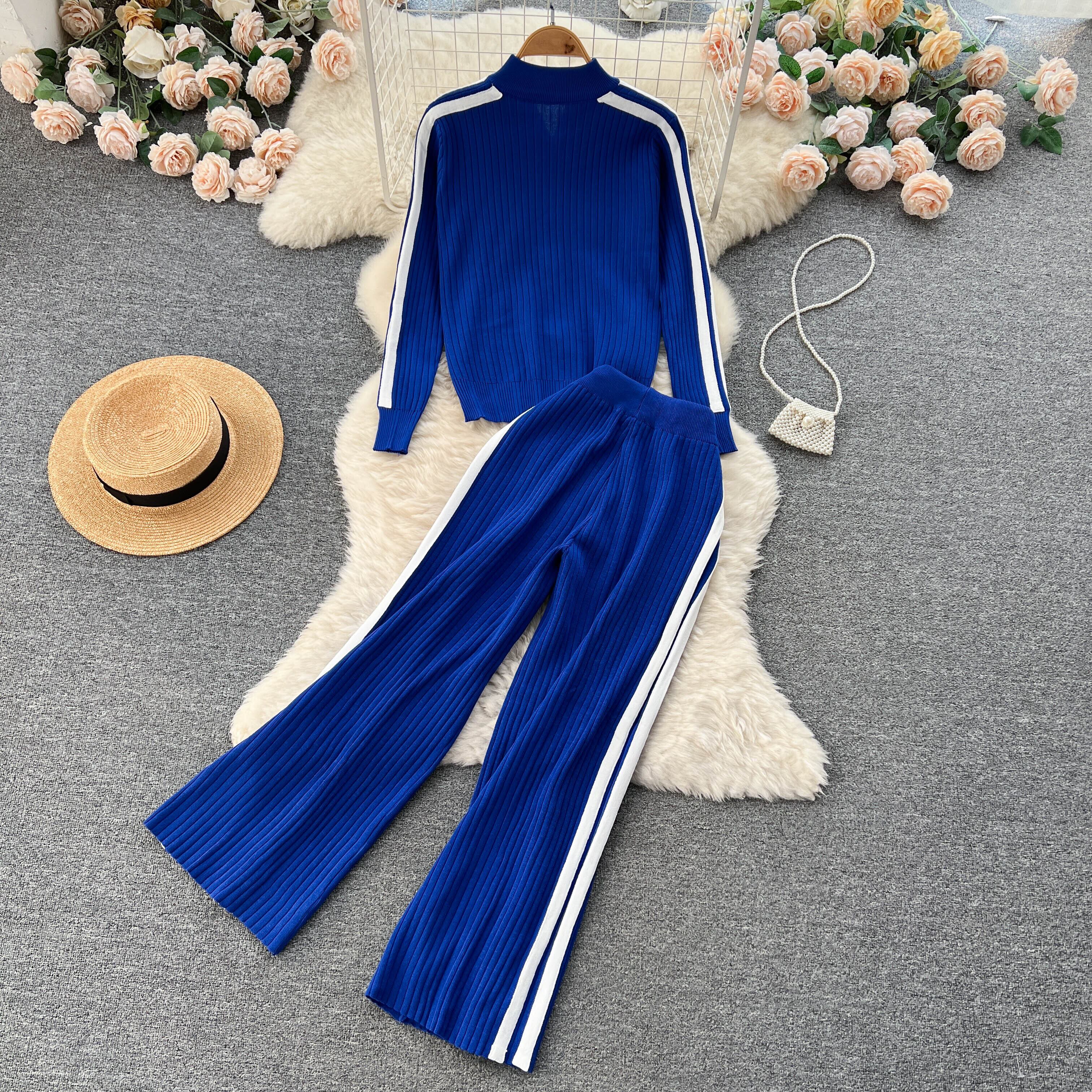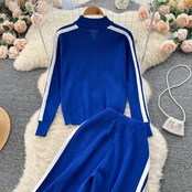 ニット スポーツ スーツ レディース 秋 ジッパー タートルネック カーディガン ジャケット + 縦長 ワイドパンツ 2点セット オータム 秋物 lyxaj45657780525
