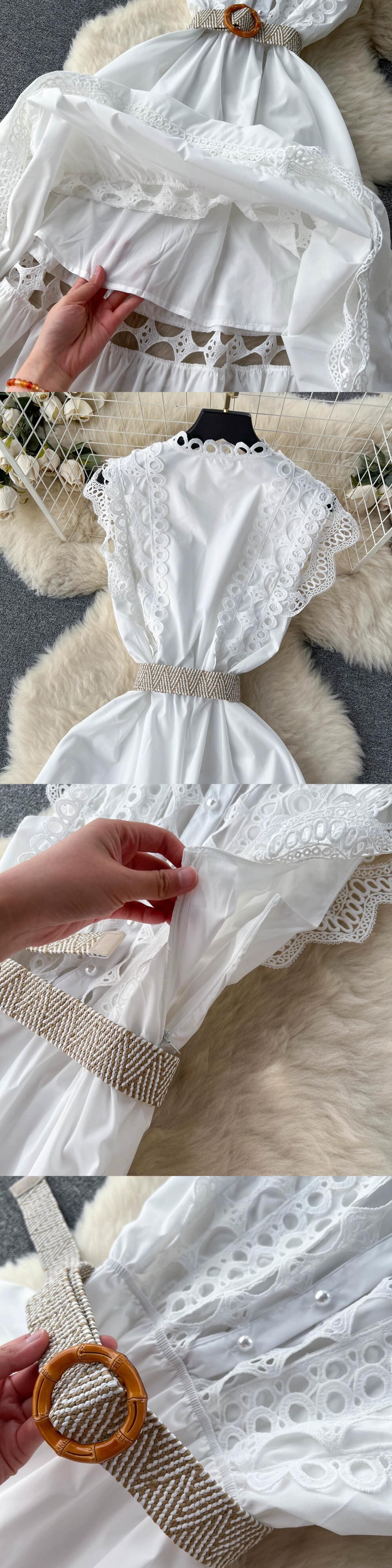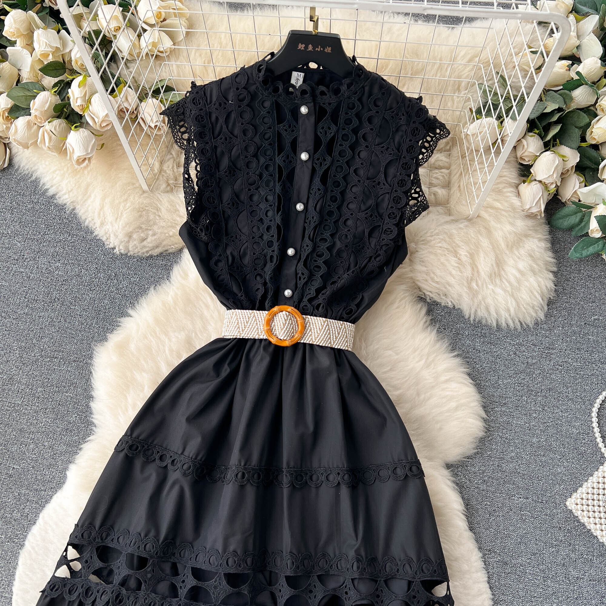 フランスの気質の高級感スタンドカラー中空刺繍レースステッチノースリーブウエスト痩身エレガントドレス lyxaj51361995681