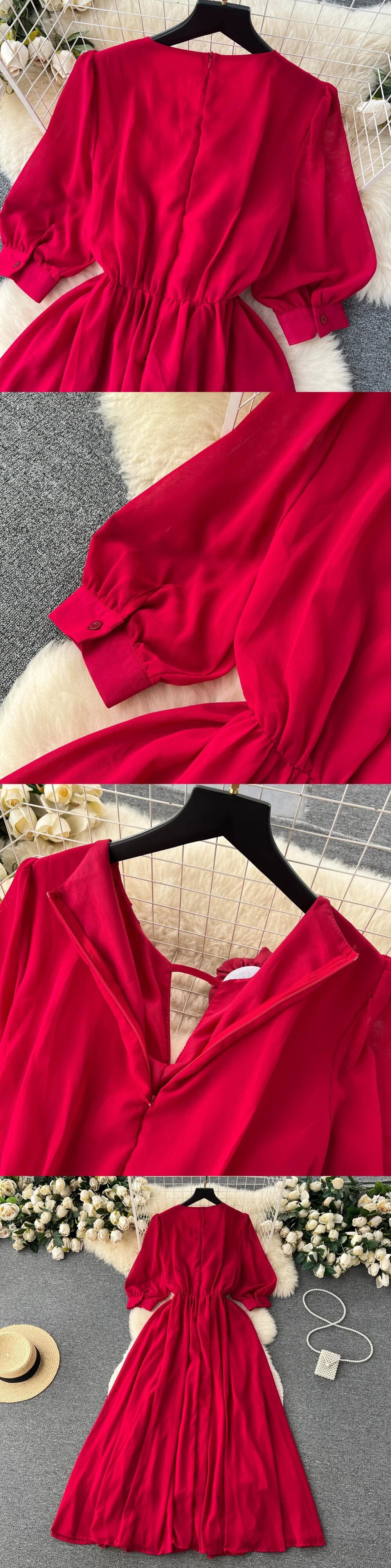 フレンチピュアディザイアハイエンドパフスリーブドレス女性ツイストフラワーデザイン感ウエストシフォンビッグスイングロングスカート lyxaj70506995561