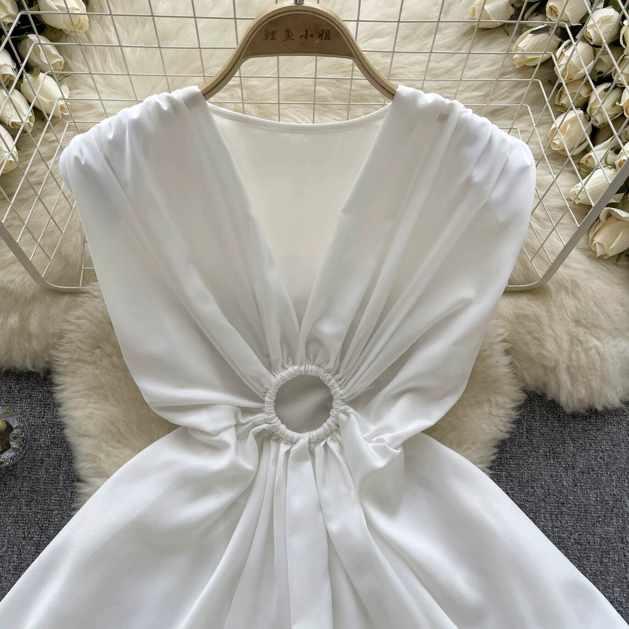 フレンチニッチファッション V ネックプリーツウエスト中空サテントップ女性の夏の薄い気質シックなフィッシュテールシャツ サマー 夏物 Vネック lyxaj35493967023