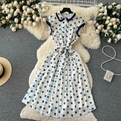 夏の新しい気質ヘップバーンスタイルスリムウエストミッドレングス水玉ドレスレディースタイアップスリムスリムドレス サマー 夏物 lyxaj21534245777