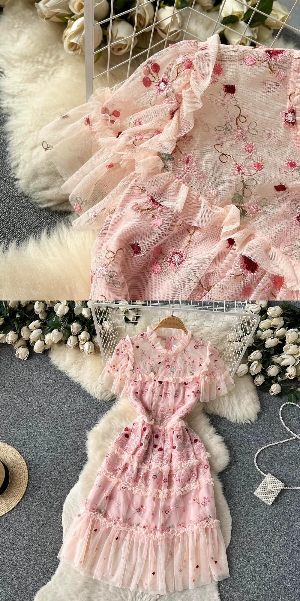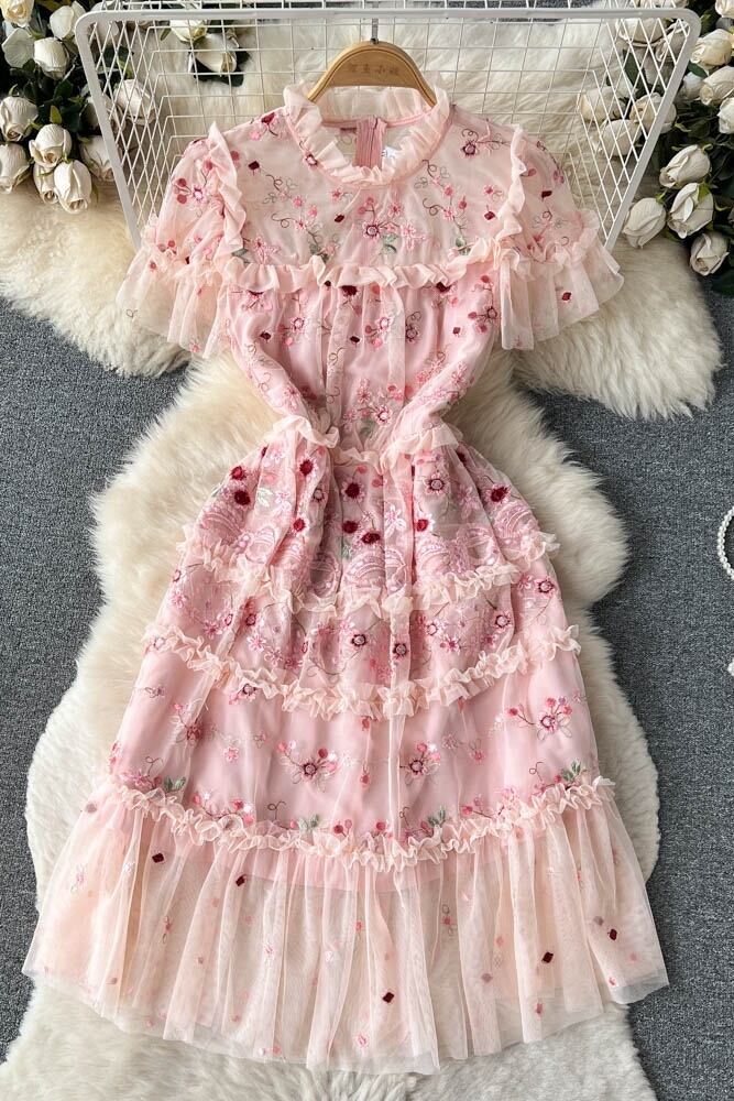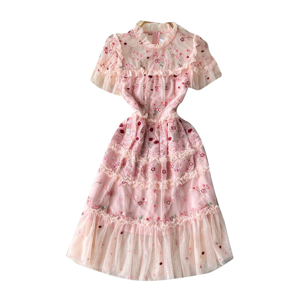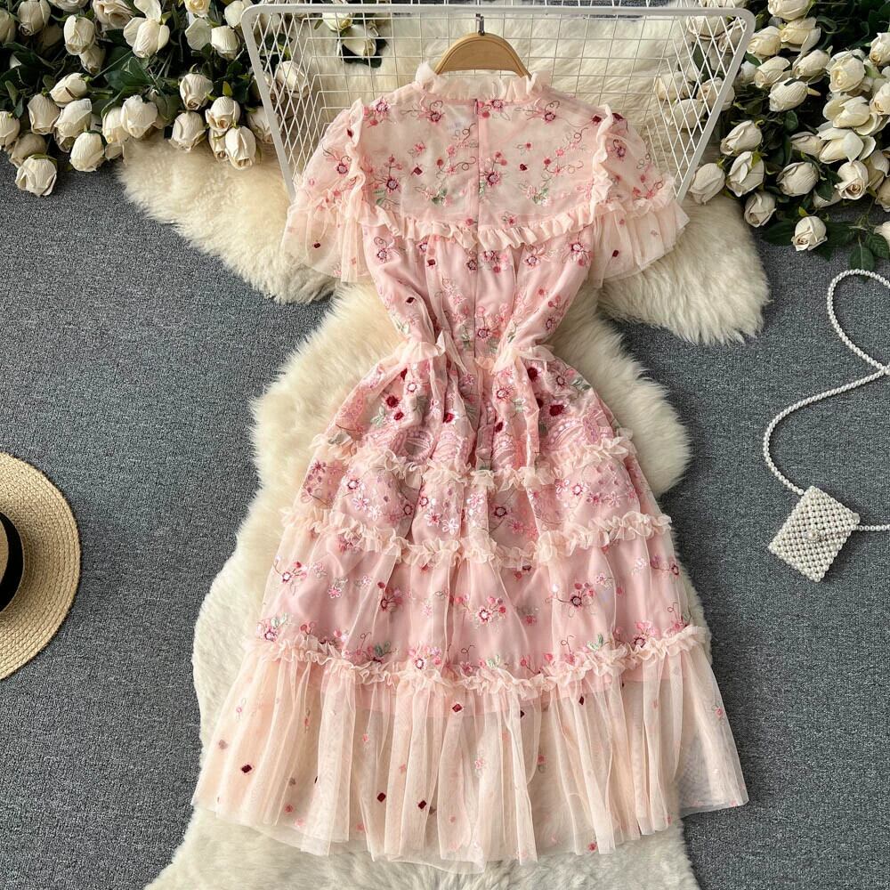 ヨーロッパとアメリカのセレブの夏の新しい木耳プリントケーキスカート女性重工業刺繍甘いプリンセスプリーツドレス 大人ガーリー スウィート キュート カジュアル サマー 夏物 ヨーロピアン lyxaj3219697050