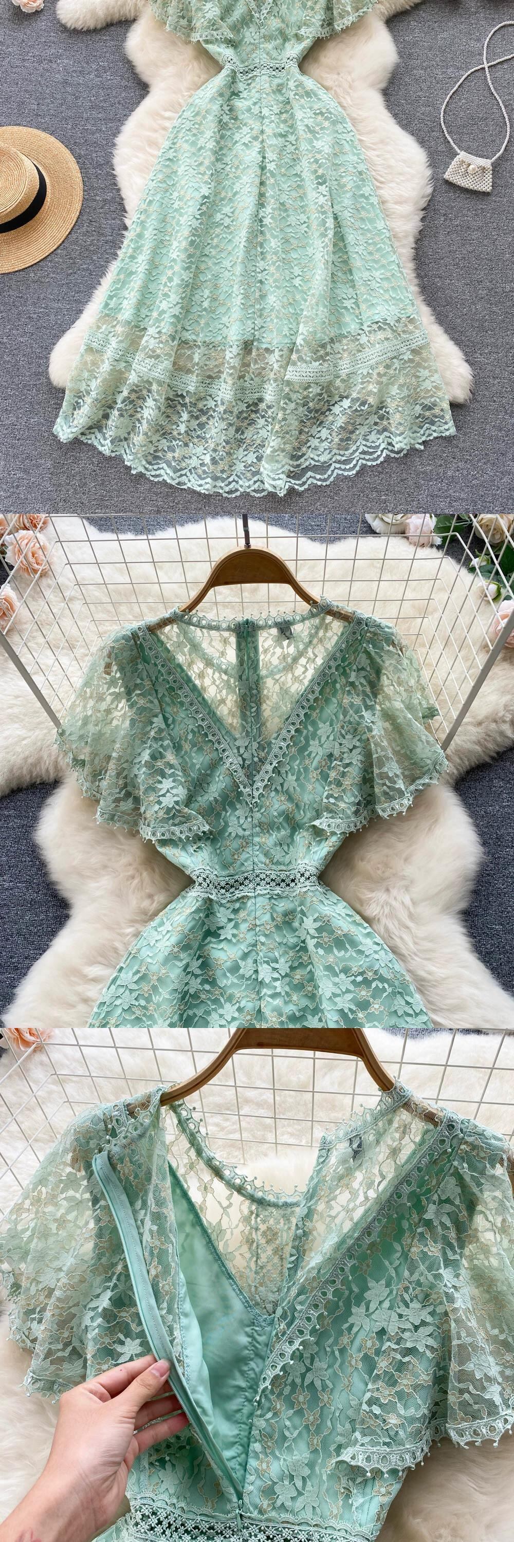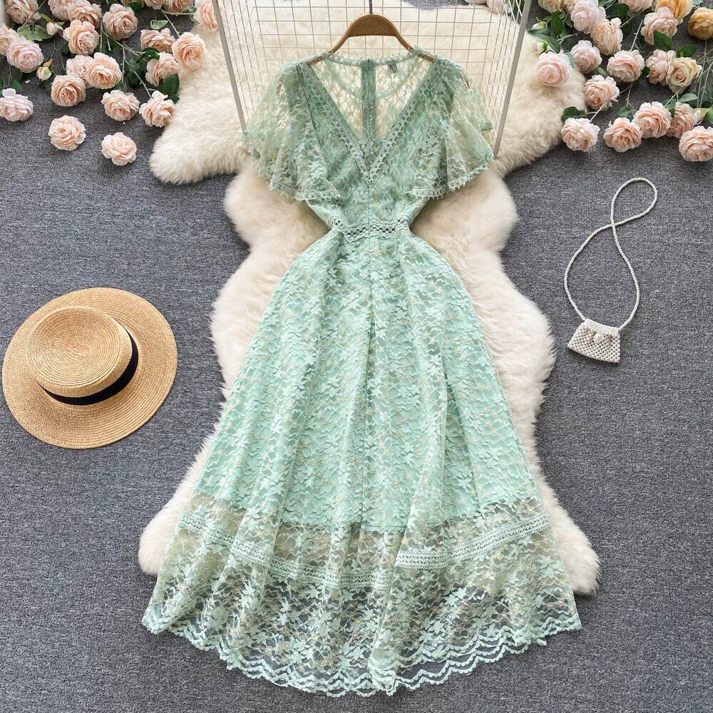 フレンチスタイルの優しい風スーパーフェアリーレースドレス2022夏スリムウエストラインキキョウスカート気質ビッグスイングaラインスカート サマー 夏物 lyxaj77488324379