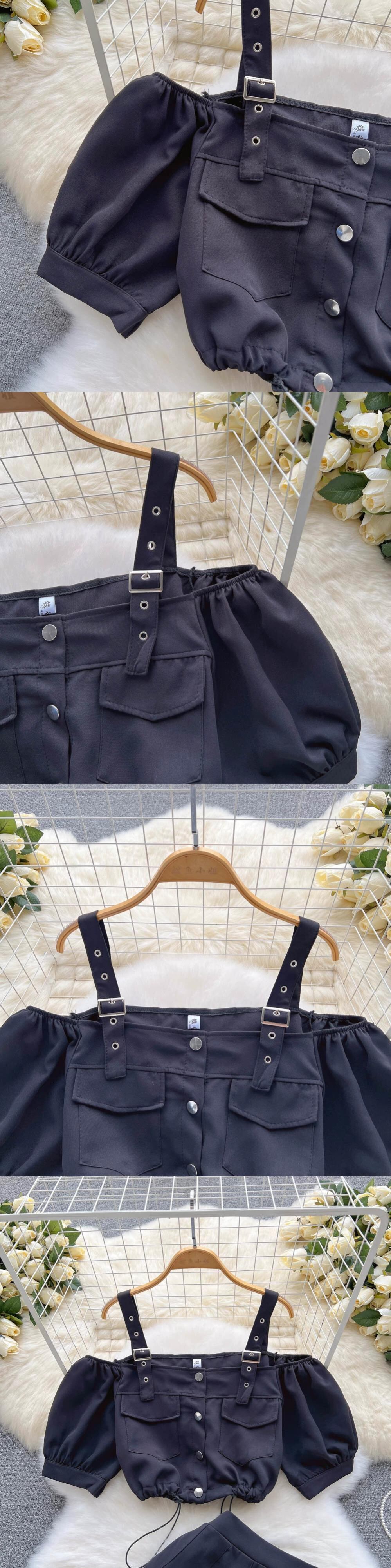 ファッション老化防止スーツの女性の夏の新しいストラップレスサスペンダーショートトップハイウエストプリーツスカートツーピースセットのバージョン ハイウェスト サマー 夏物 lyxaj83865376004