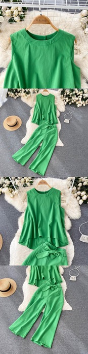 今年人気の美しいツーピーススーツレディース夏ノースリーブベストトップリボンハイウエストワイドレッグ9点パンツ ハイウェスト サマー 夏物 lyxaj80695682633