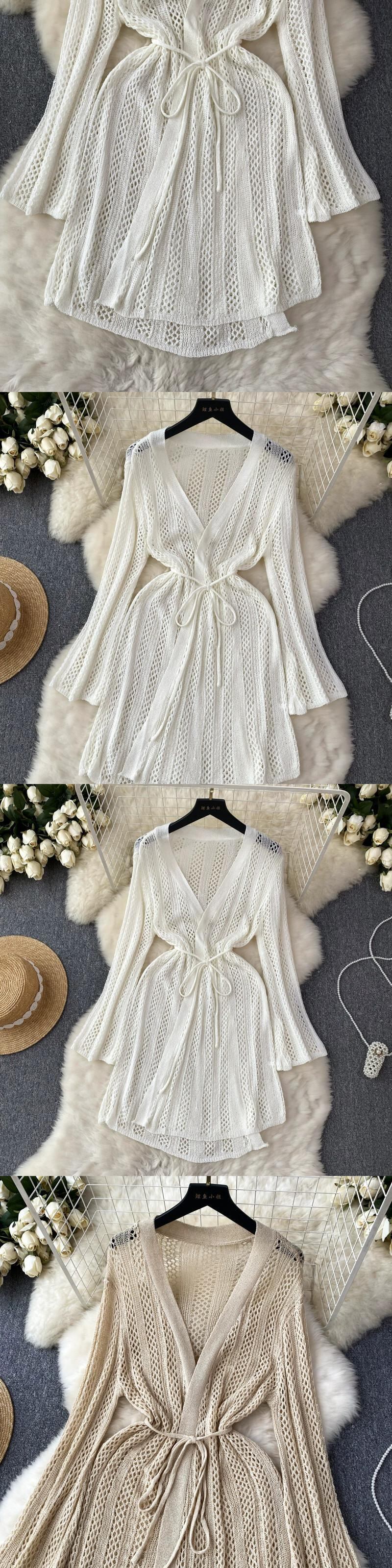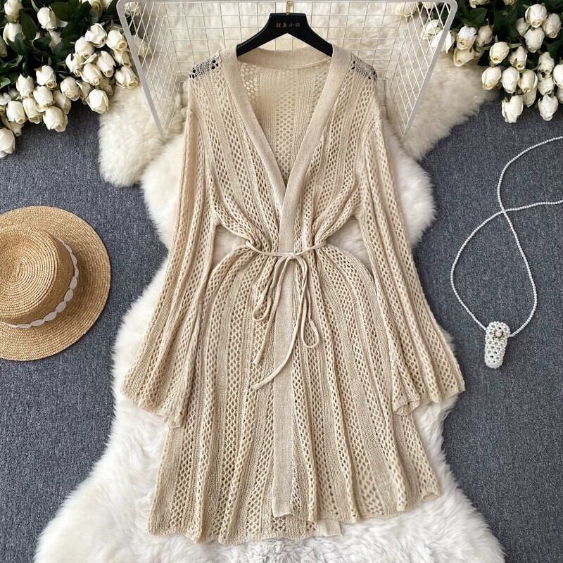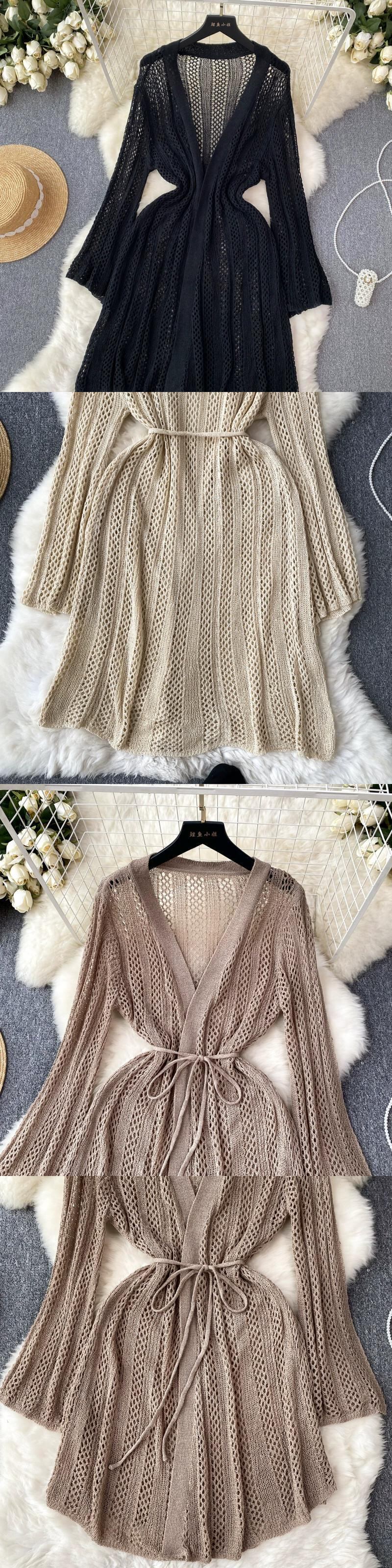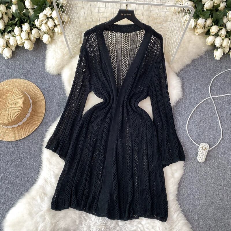 ニット中空ルーズ怠惰な風ミッドロングカーディガン女性アウター薄いショールジャケット多用途長袖トップトレンディ lyxaj81392147386