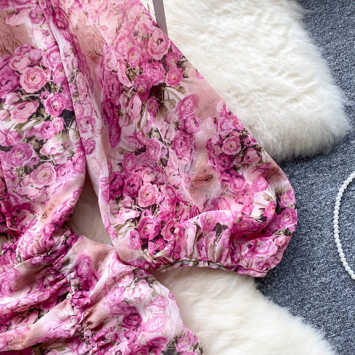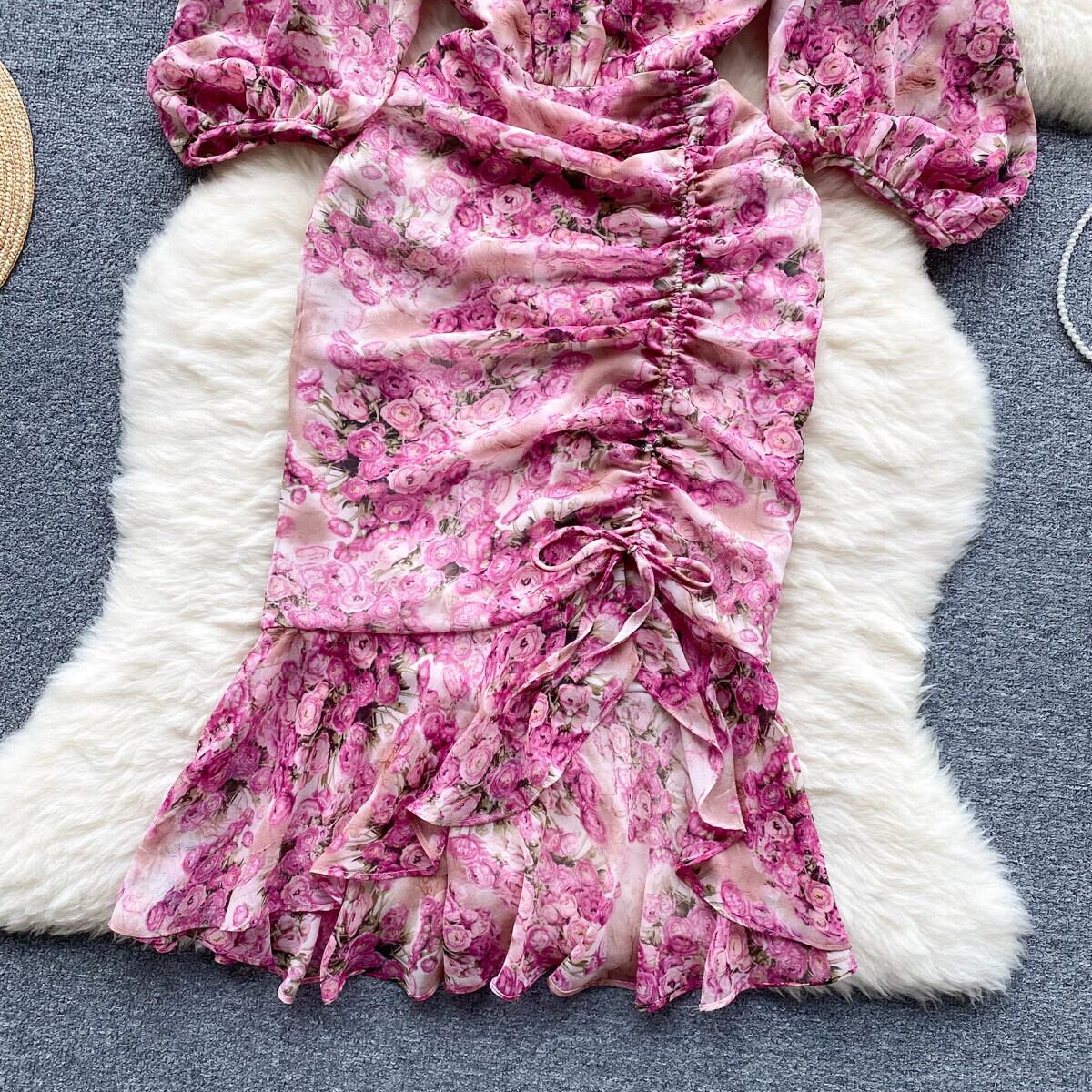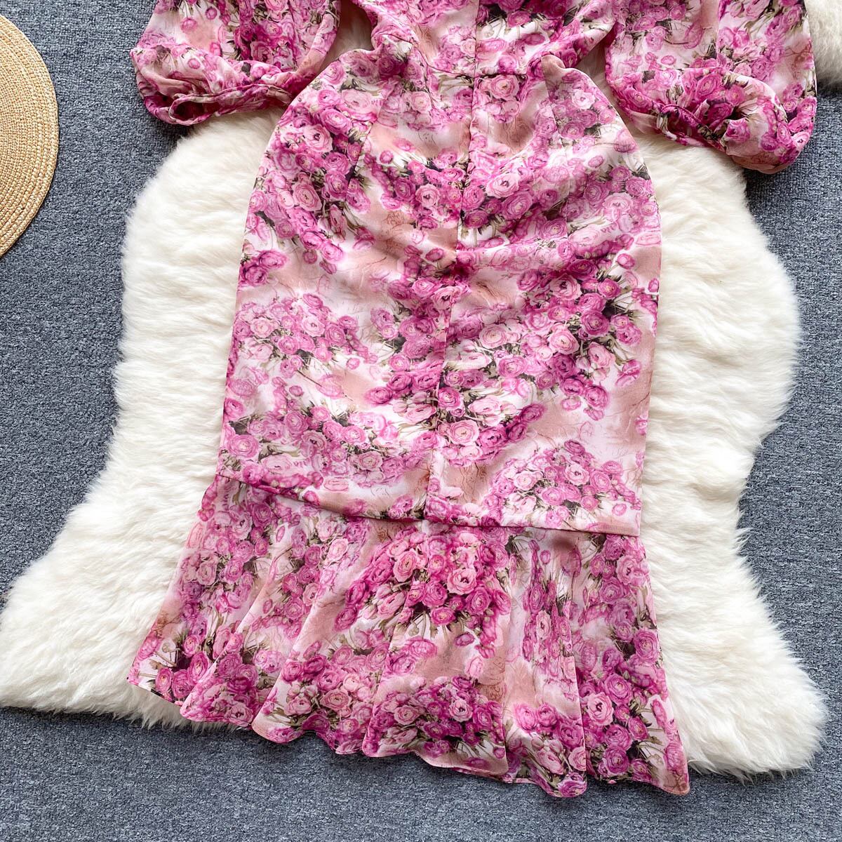 フランスの高級花柄シフォンドレス女性の春と秋の新しいスタイルの気質ウエスト巾着プリーツバッグヒップマーメイドスカート スプリング 春物 オータム 秋物 lyxaj86221240939