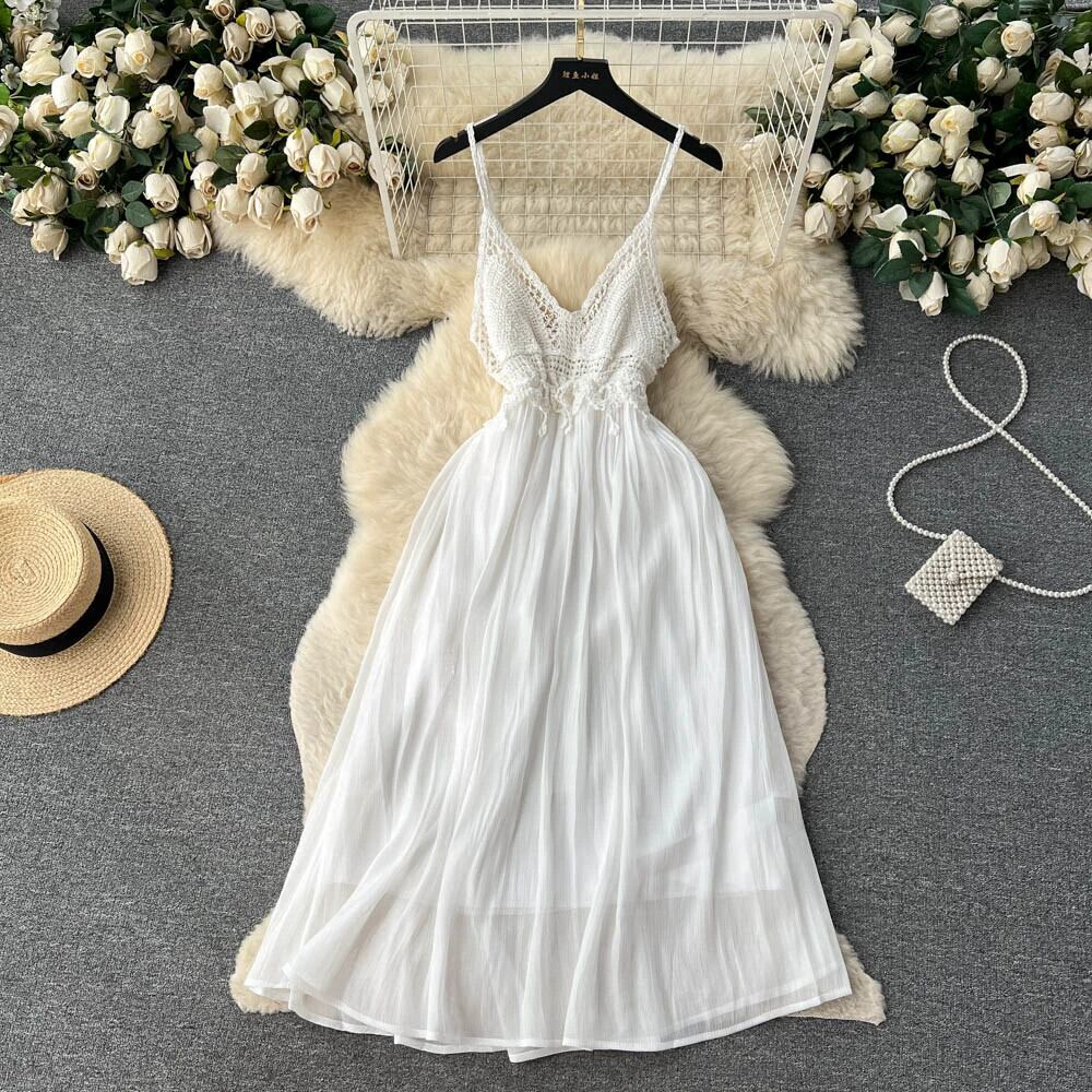 エスニックシーサイドホリデーサスペンダースカート女性の夏のハイエンドボヘミアン中空編みステッチメッシュドレス サマー 夏物 lyxaj34660862700