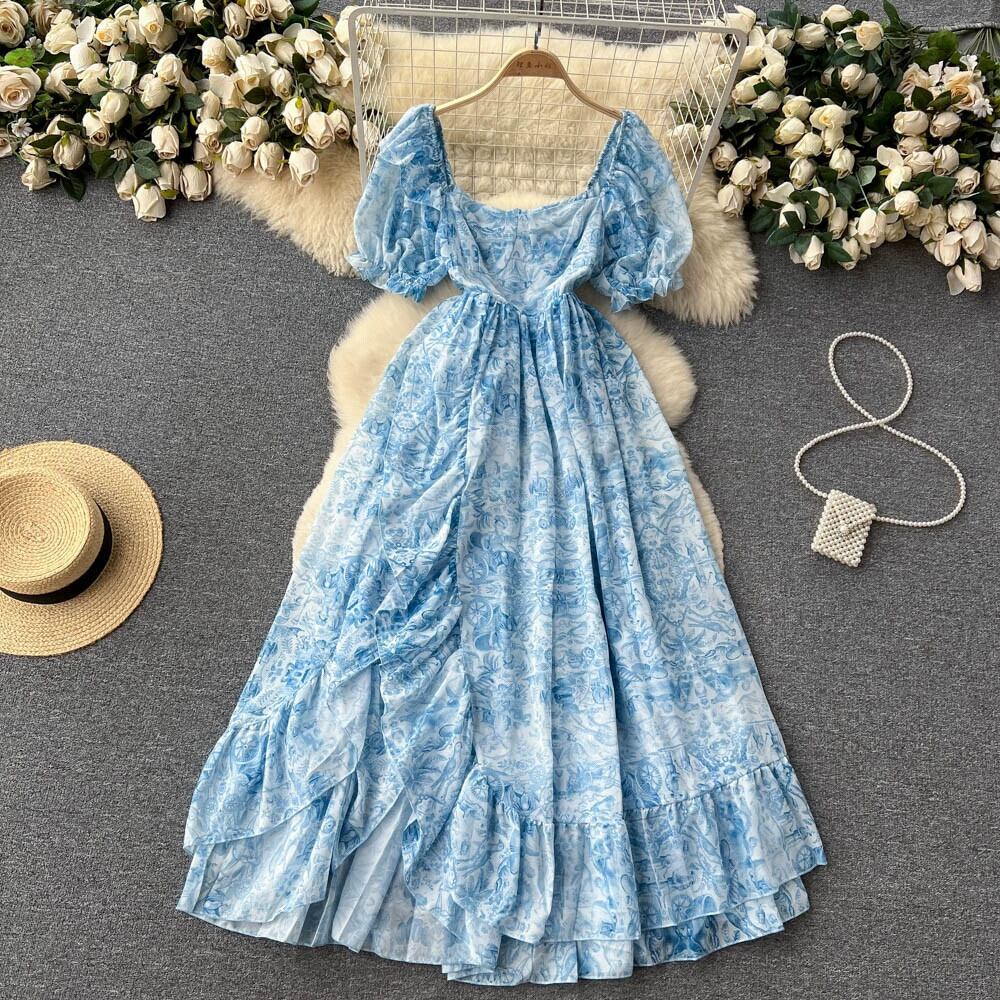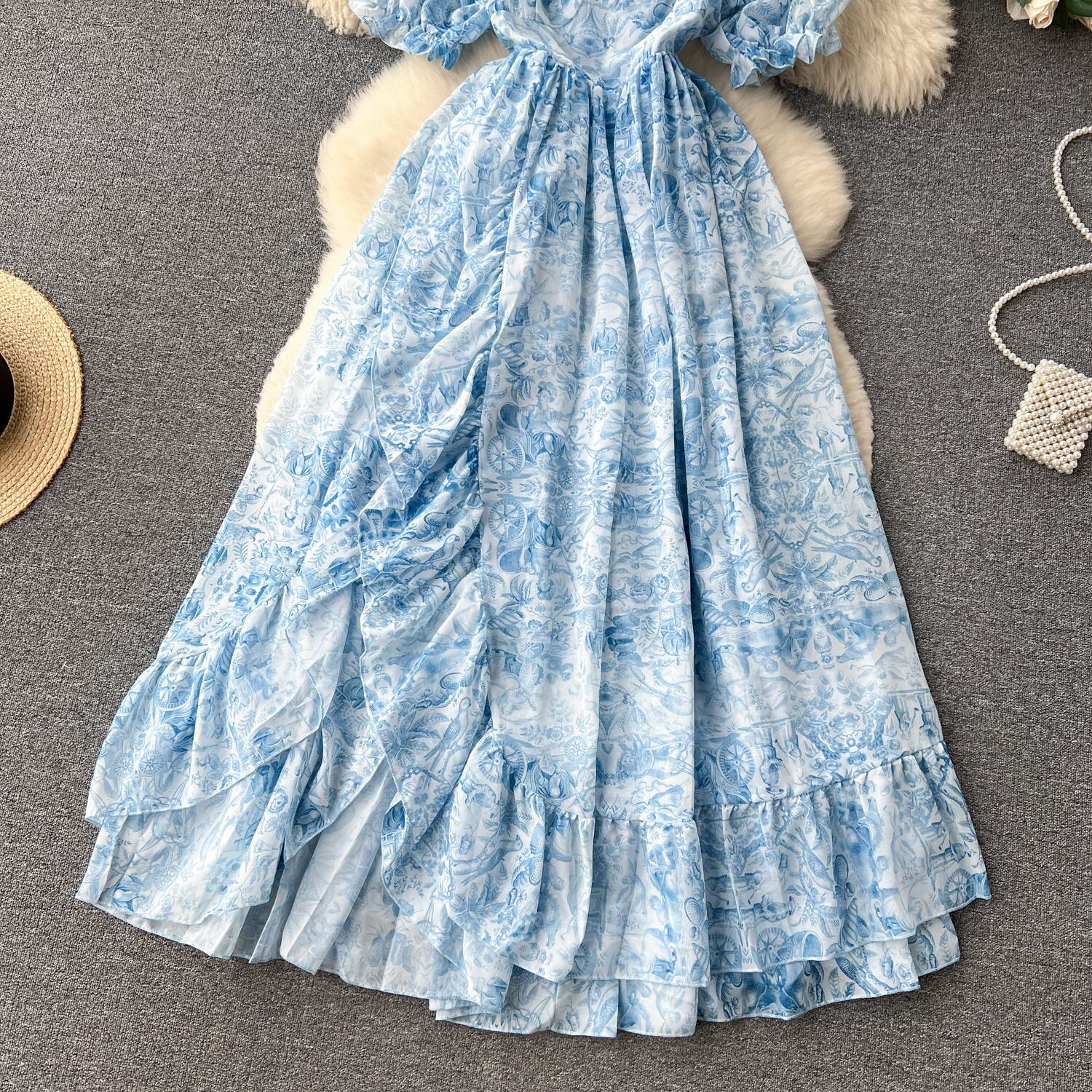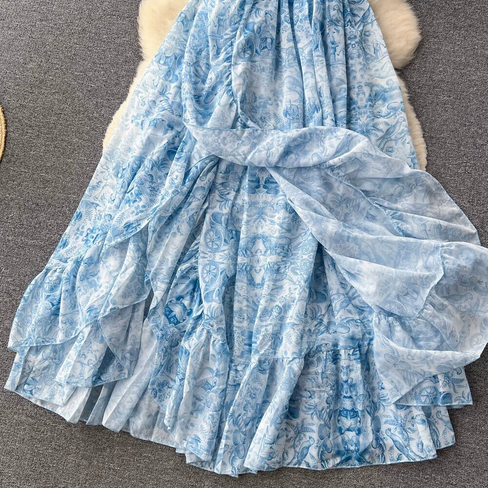 ヨーロッパとアメリカの宮廷スタイルのデザインセンスハイウエスト細い女性のミドル丈スカートの女性の夏の新しいプリント木耳エッジビッグスイングスカート ハイウェスト サマー 夏物 ヨーロピアン lyxaj63160764559