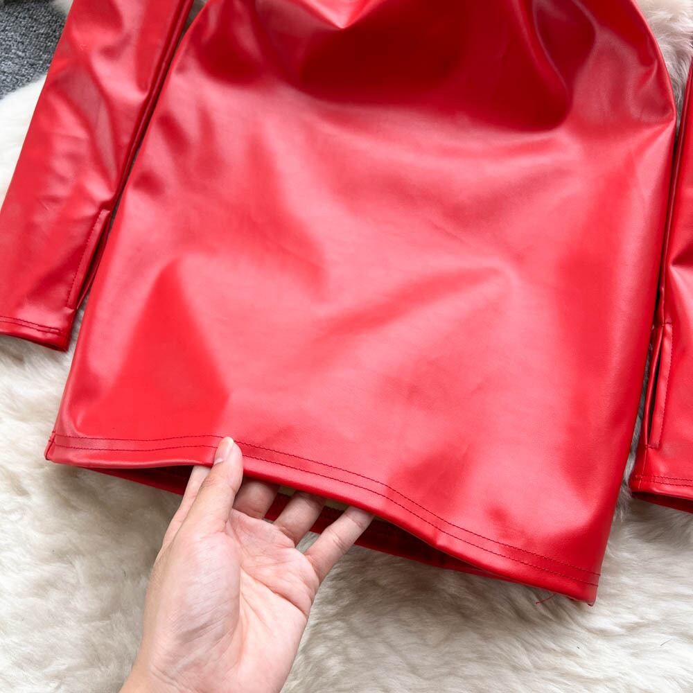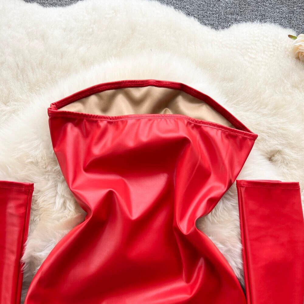 秋と冬の新しいドレスの女性のファッションチューブトップ PU レザースカートセクシーなタイトな気質バッグヒップスカート袖潮 オータム 秋物 ウィンター 冬物 lyxaj50610421883