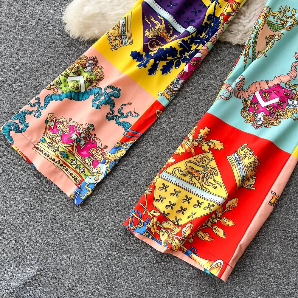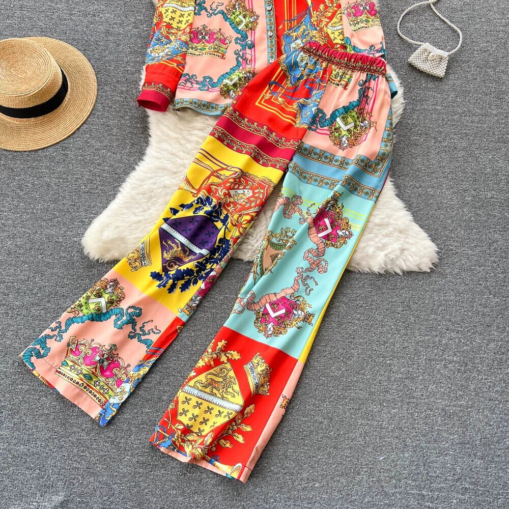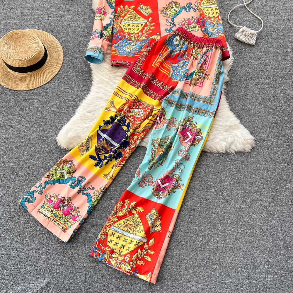 2022 秋の新ヨーロッパとアメリカのインコートレトロプリントシャツ + ワイドレッグカジュアルパンツツーピーススーツトレンディ オータム 秋物 ヨーロピアン lyxaj37721222919