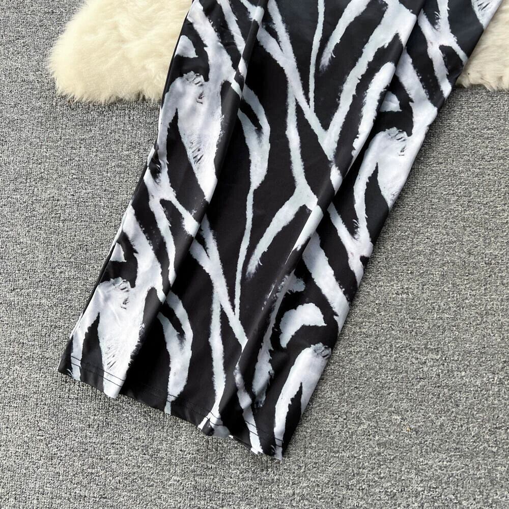 ヨーロッパとアメリカ風のプリントスーツレディースショート長袖Vネックトップ+ミッドレングスヒップスカート2点セットトレンディ ロング ヨーロピアン lyxaj48298537202