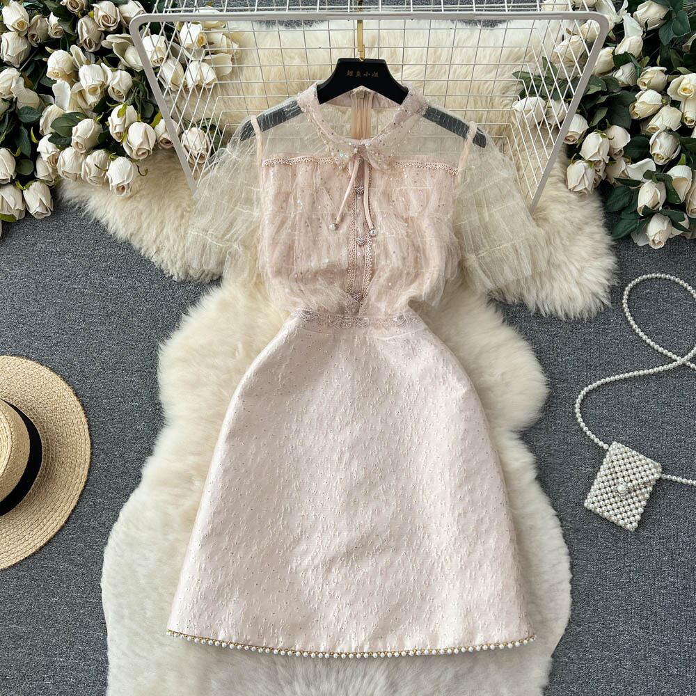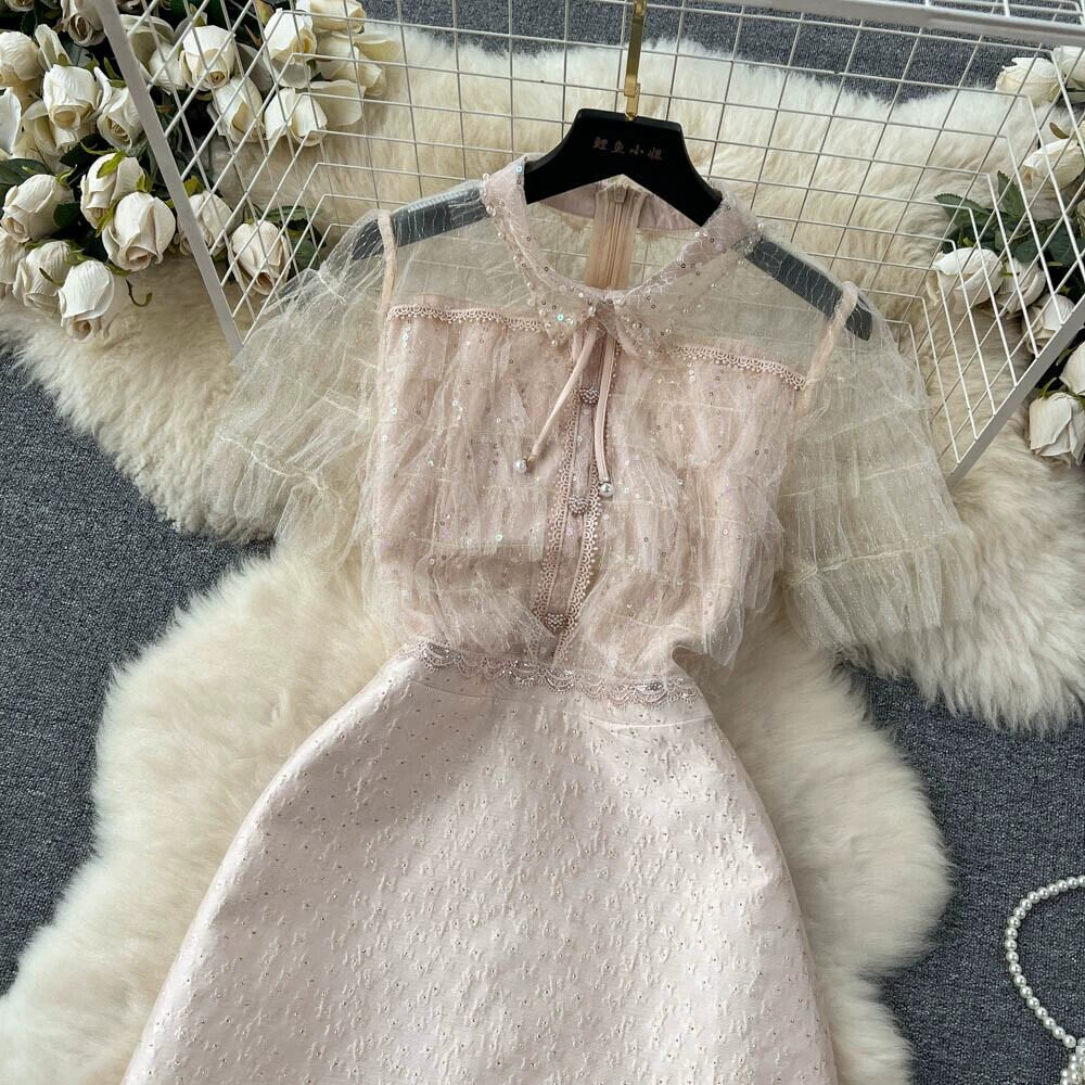 セレブライト高級ハイエンドスパンコールジャカードウエスト痩身メッシュスプライシング重工業ビーズドレスドレス lyxaj17862327069