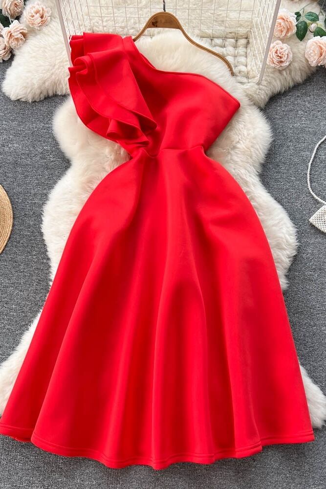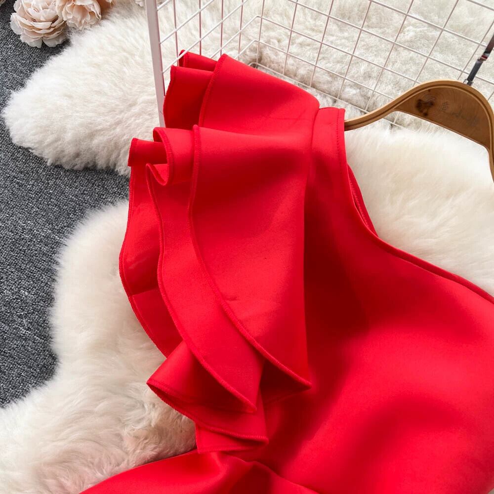 春と秋のデザイン感のサテンドレス小さなイブニングドレスレディースフリルワンショルダー斜め襟フレンチスリムドレス スプリング 春物 オータム 秋物 lyxaj53258750003