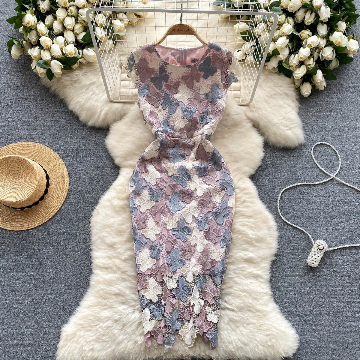 フランスの気質の高級感蝶中空フックフラワーレースドレス女性のウエスト痩身エレガントなレディバッグヒップスカート フラワーデザイン lyxaj76134112772
