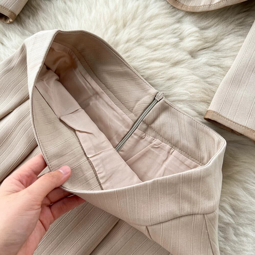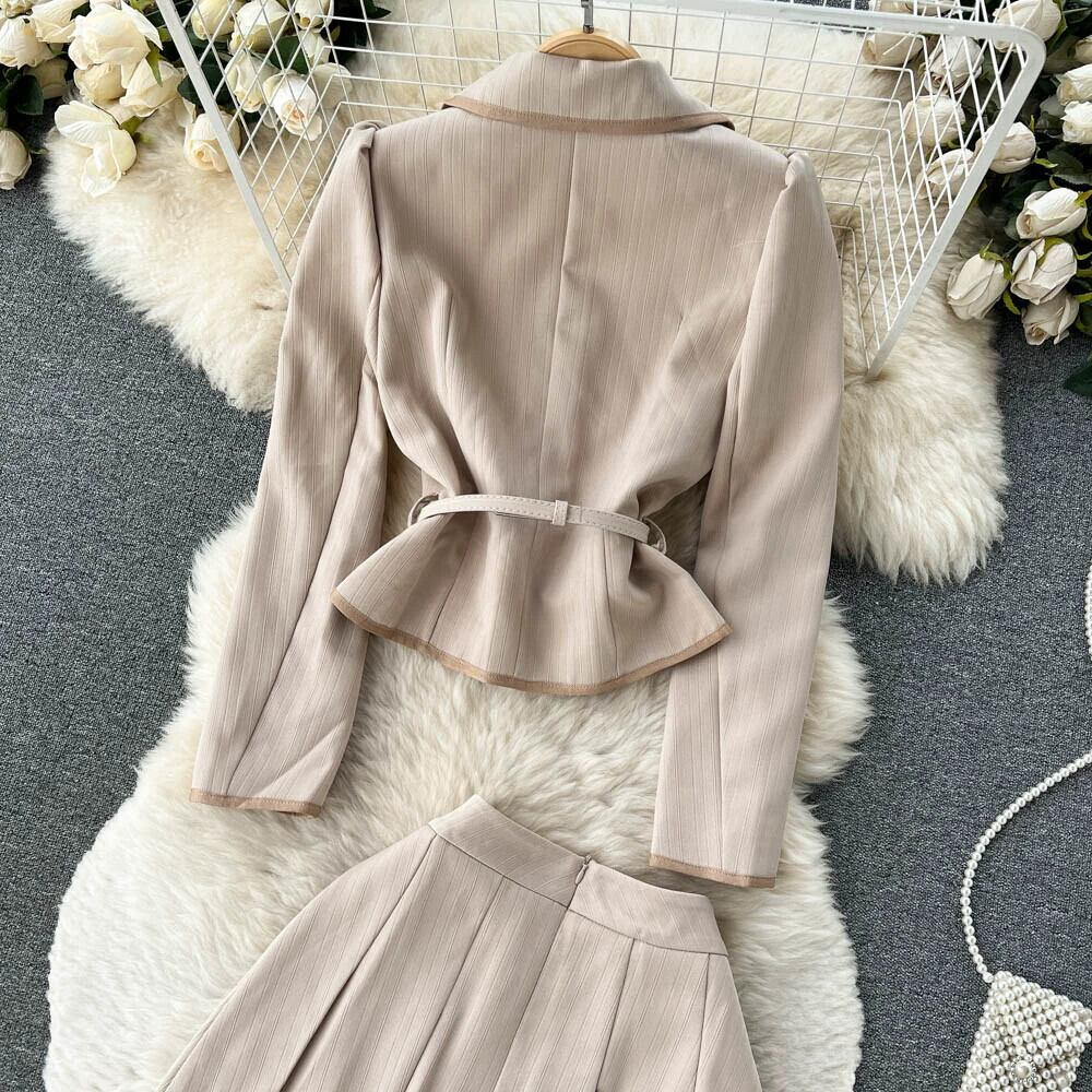秋冬 スモールフレグランススーツ レディース 長袖ラペルショートスーツジャケット+大振りプリーツスカート 2点セット ロング オータム 秋物 ウィンター 冬物 lyxaj53070028039