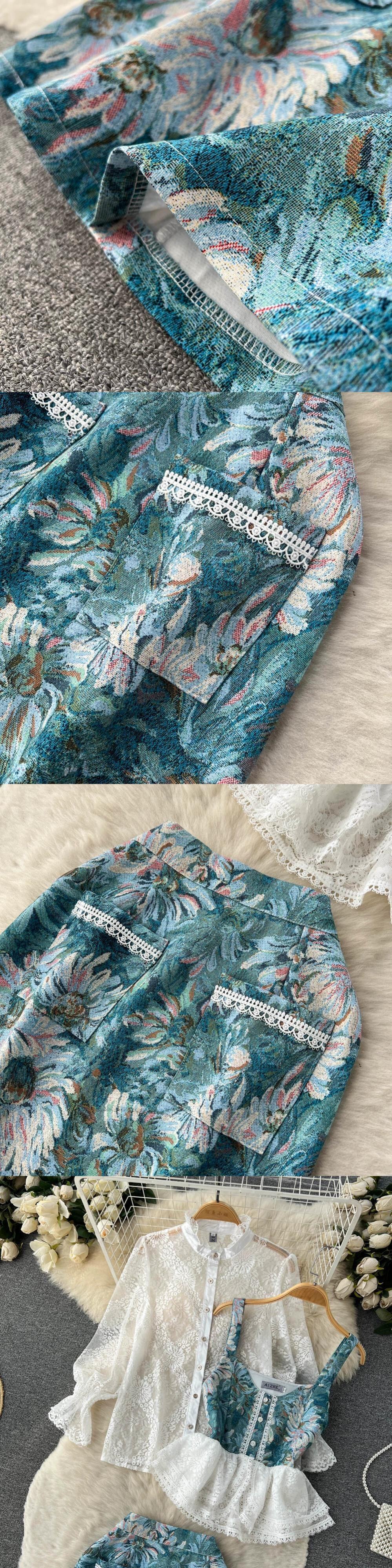 春秋風スウィートレース長袖シャツ+フリルキャミソール+ヒッププリントスカートの3点セット ロング 大人ガーリー キュート カジュアル スプリング 春物 オータム 秋物 lyxaj78873448259