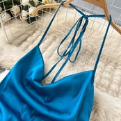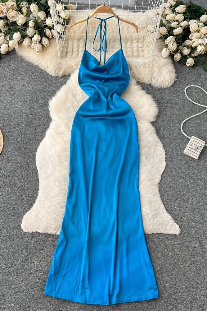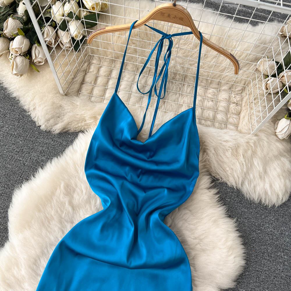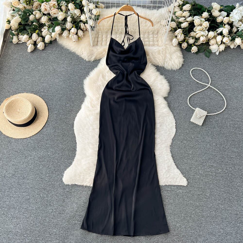 夏レトロサスペンダーホルターネックドレスフェミニン純粋な欲望背中の開いた自己修養スリムバッグヒップフィッシュテールロングスカートトレンディ サマー 夏物 ピュア lyxaj23709039977