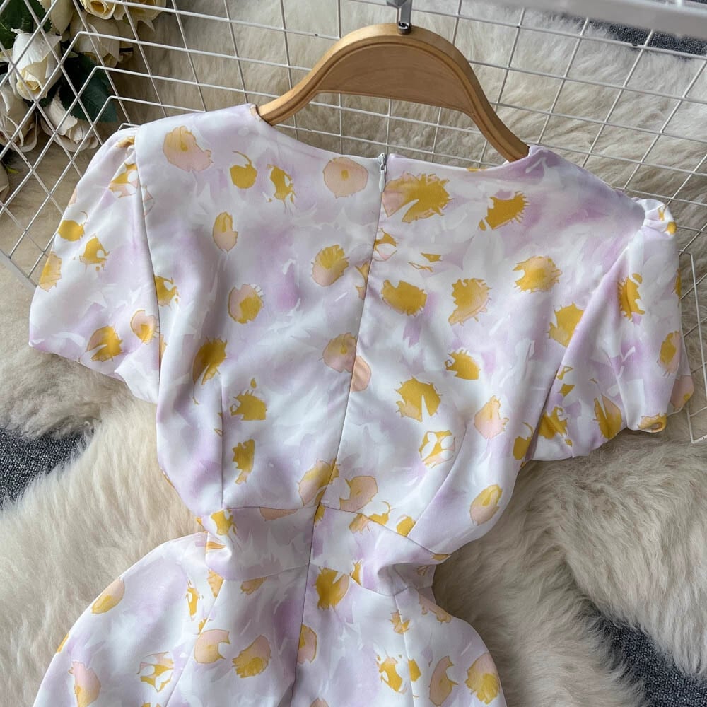 2023 夏の新バージョン ins スタイルファッション気質 V ネックハイウエストスリムフィッシュテールプリントラップヒップドレス ハイウェスト サマー 夏物 Vネック lyxaj82905671258