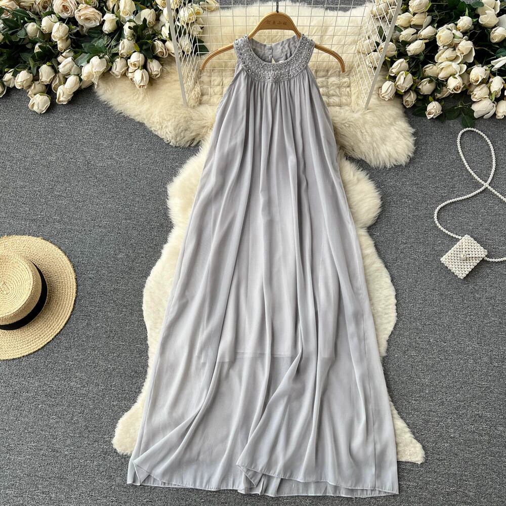 夏ニッチデザインセンスフレンチスモールフレグランスプリンセスぶら下げネックドレス女性ノースリーブルーズ妖精人形スカート サマー 夏物 lyxaj61943881509