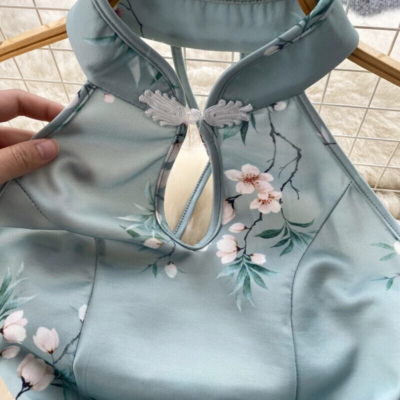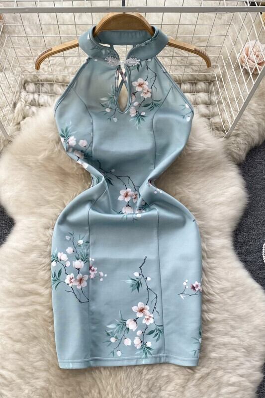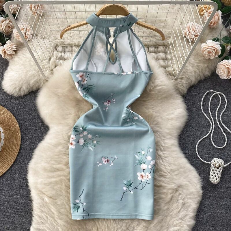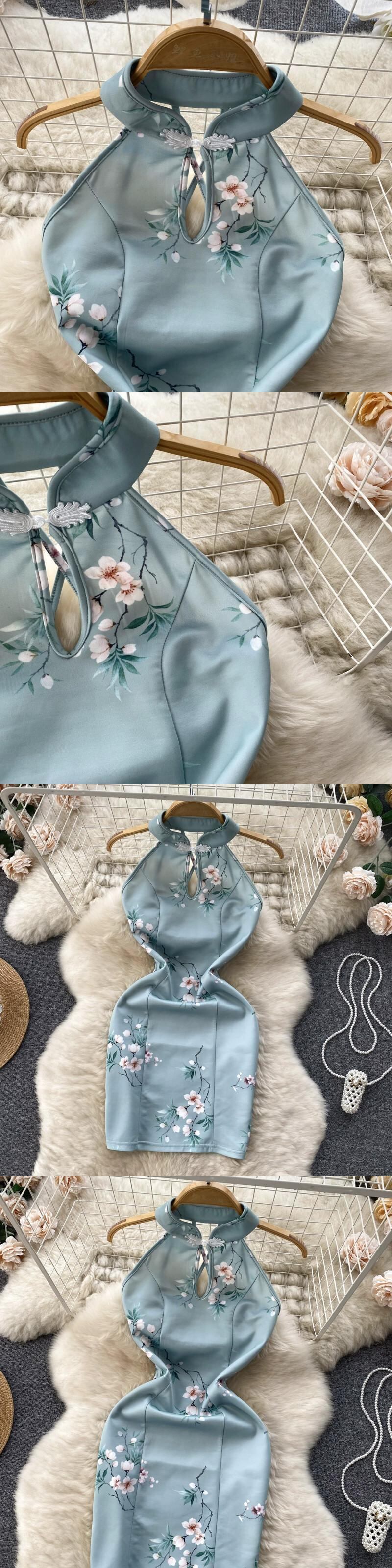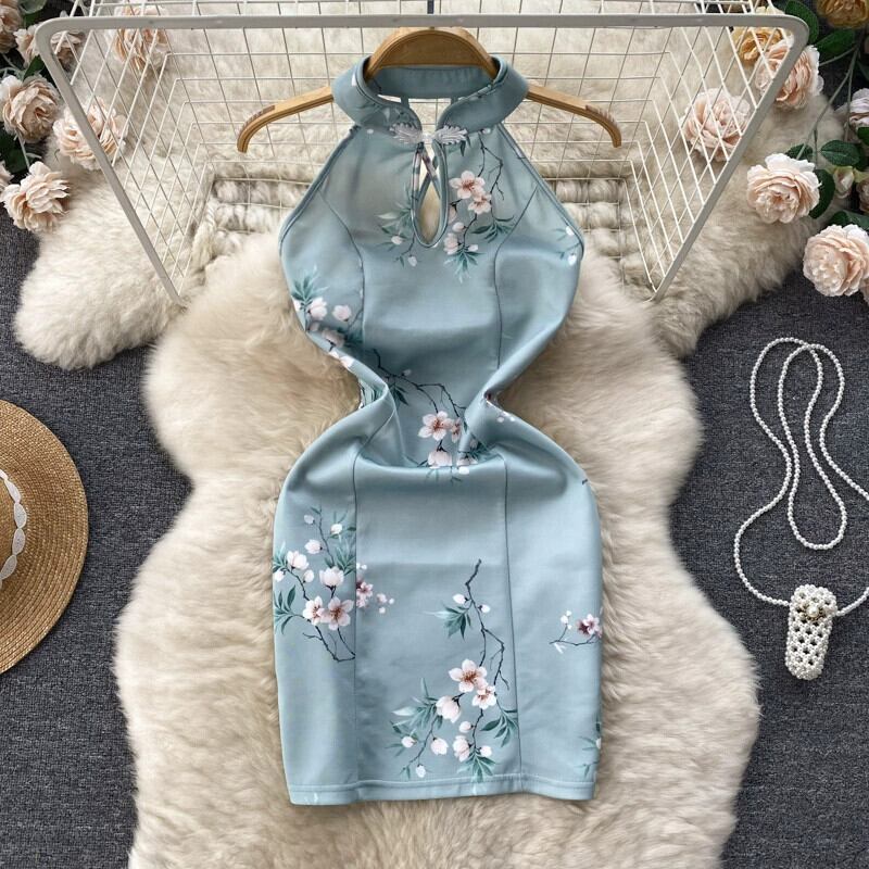 夏の純粋な欲望スタイルのセクシーな気質ストラップレスレトロ中国風チャイナドレス女性のノースリーブバックレススリットバッグヒップドレス サマー 夏物 ピュア lyxaj87565685253