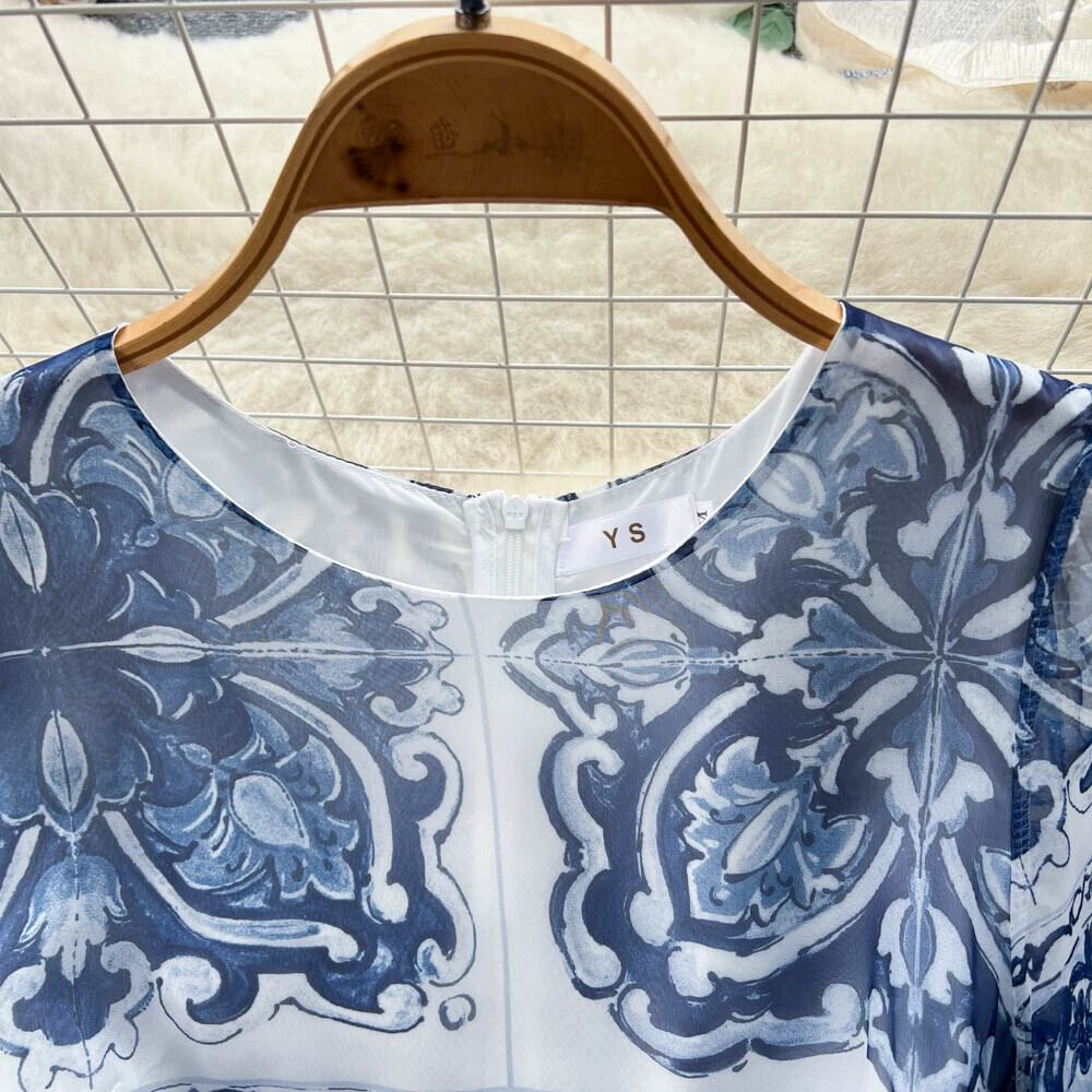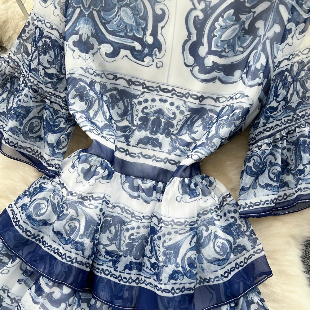 ヨーロッパとアメリカのフランスのレトロな宮廷スタイルの個性ファッションプリントトランペット半袖ケーキスイングドレスロングスカート ヨーロピアン lyxaj8881307916