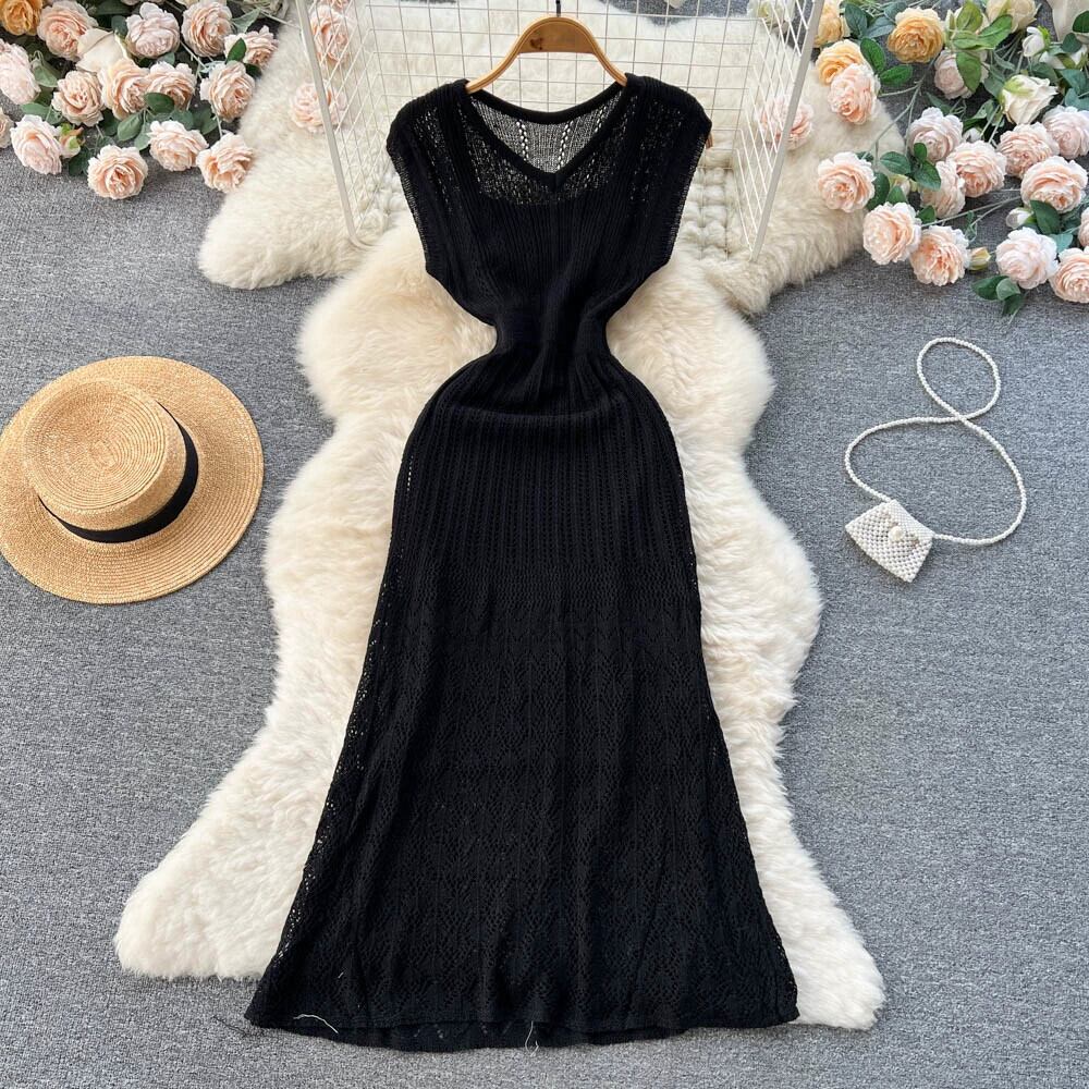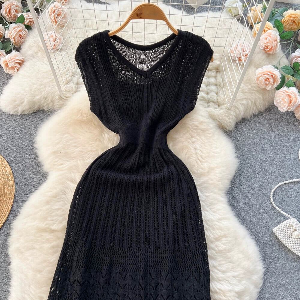 シックなオールマッチ V ネック テクスチャード ニッチ フレンチ ドレス レディース ウエストレス ノースリーブ A ライン 膝上フィッシュテール ドレス レッド Vネック Aライン lyxaj75677644738