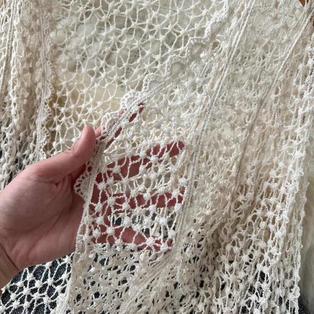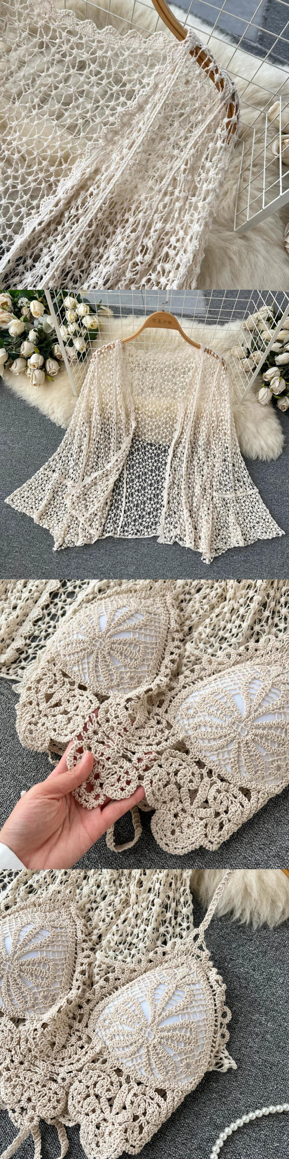 サマードレスレースホルターネックチューブトップ+中空長袖日焼け止めカーディガン+ハイウエストショートパンツホリデーツーピーススーツトレンディ ハイウェスト ロング 夏物 ショーツ ブルマー lyxaj68074530180