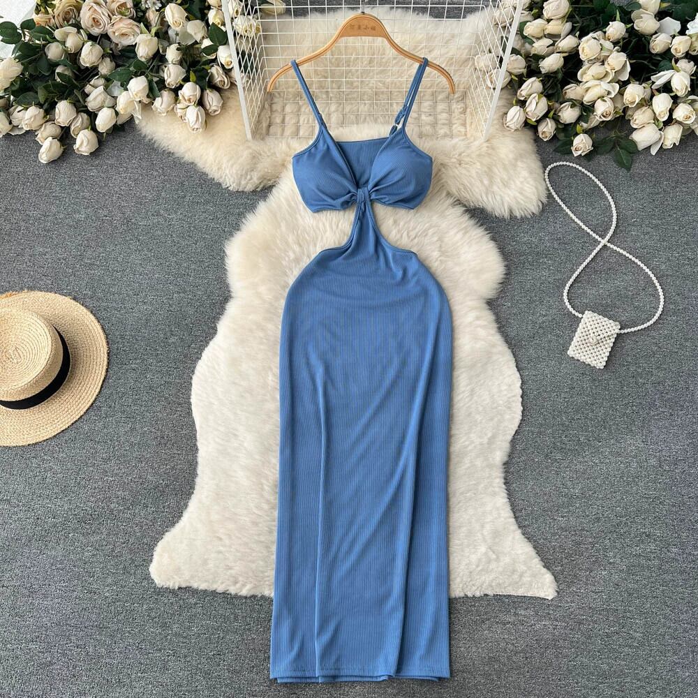 セクシーなロング中空サスペンダードレス女性の背中の開いた V ネックローカット純粋な欲望スタイルのスリムフィット尻エレガントな女性のドレス Vネック ピュア lyxaj39826358423