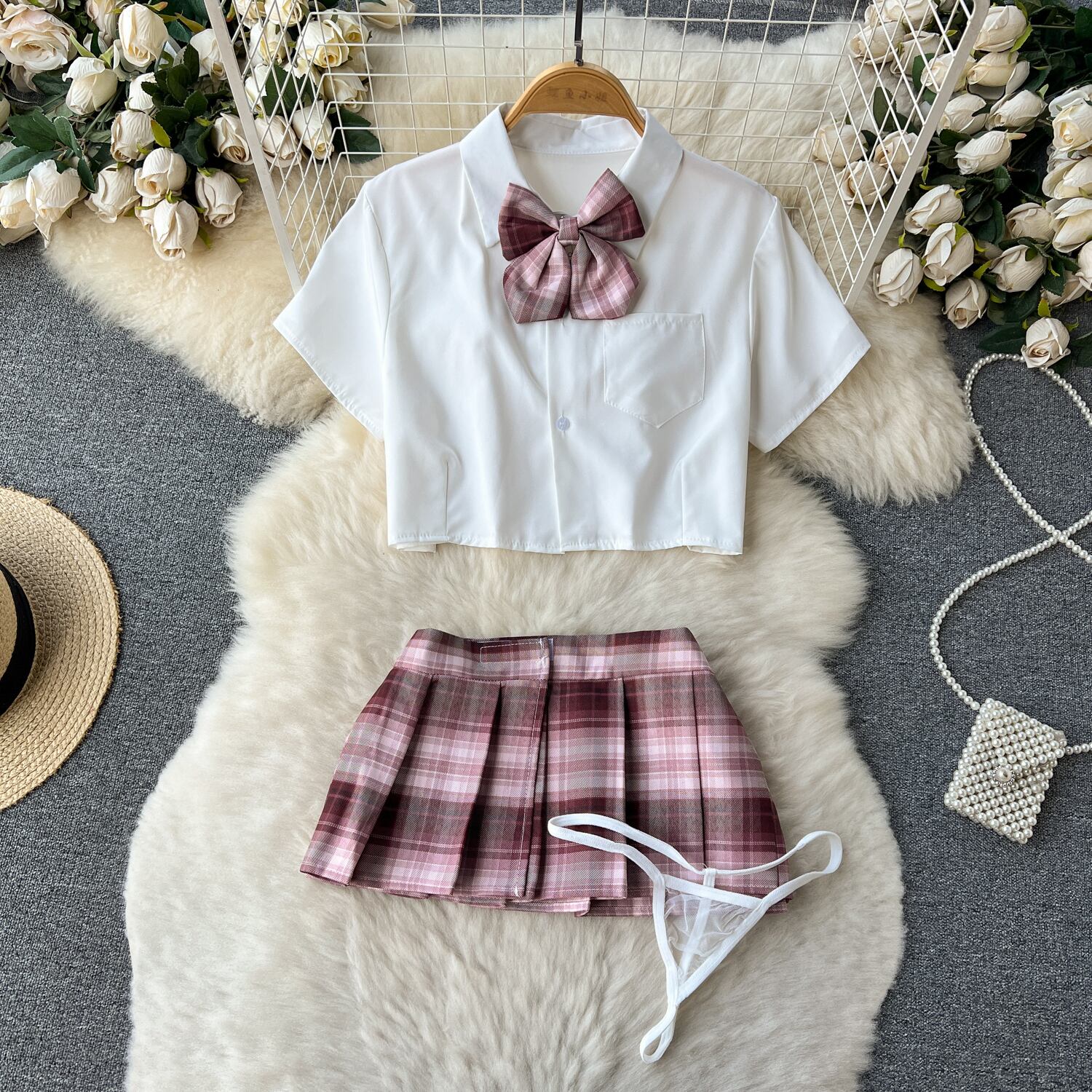 ese 新しい純粋な欲望風セクシー jk ユニム ショート リボン白シャツ プリーツ スカート スーツ トレンディです ホワイト ピュア lyxaj2718276945