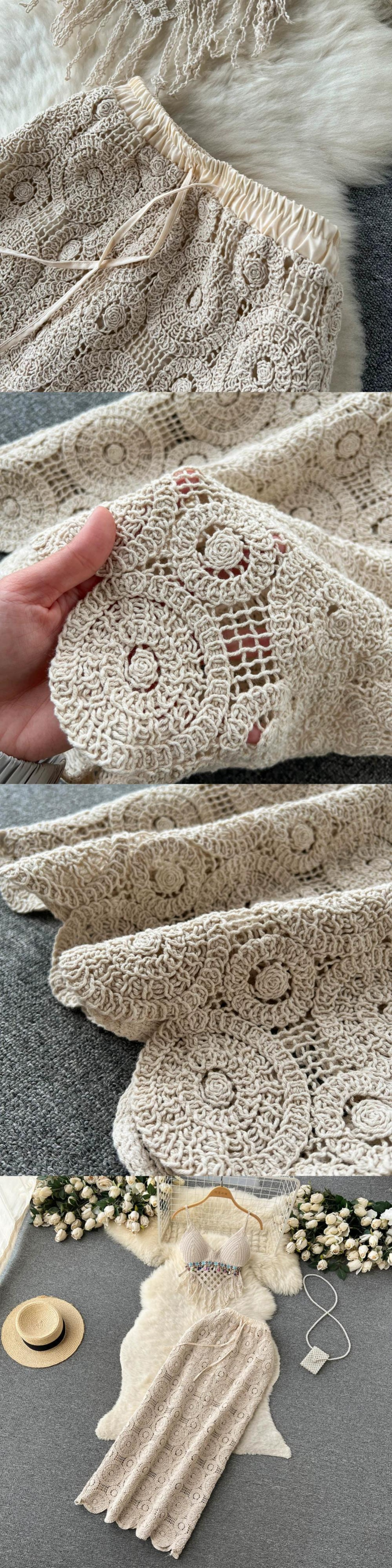 ボヘミアン中空衣装スカート女性夏ツーピースセット胸パッド、テルス、スリング、チューブトップ + パッケージヒップスカート サマー 夏物 lyxaj98942825376