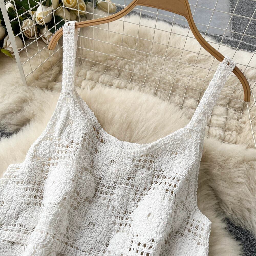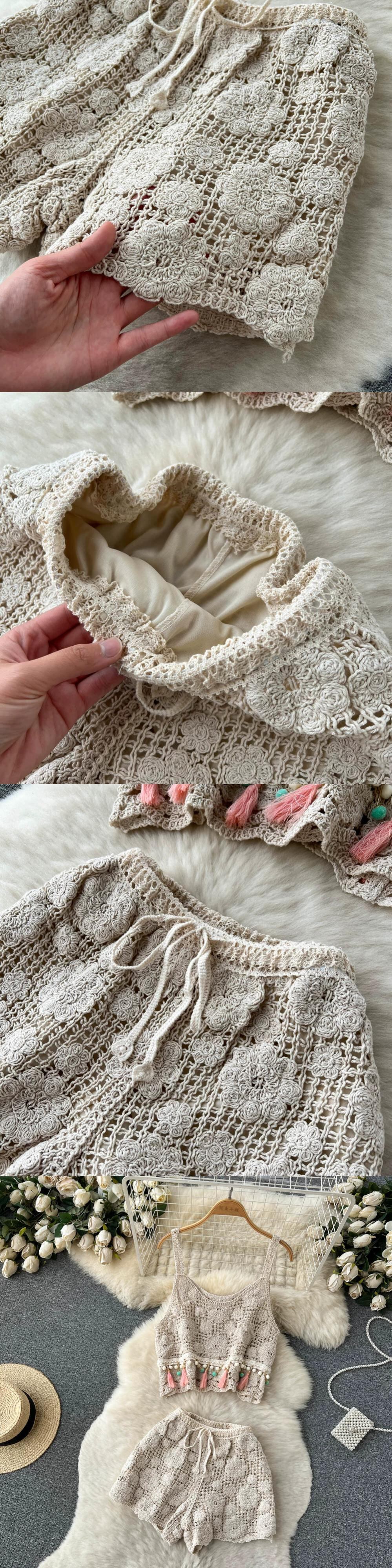 2023夏休みスタイル中空フックフラワースーツレディースサスペンダーフリンジチューブトップトップ+ハイウエストショーツ2点セット ハイウェスト サマー 夏物 ブルマー フラワーデザイン lyxaj71084667792