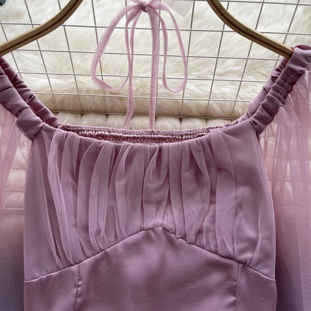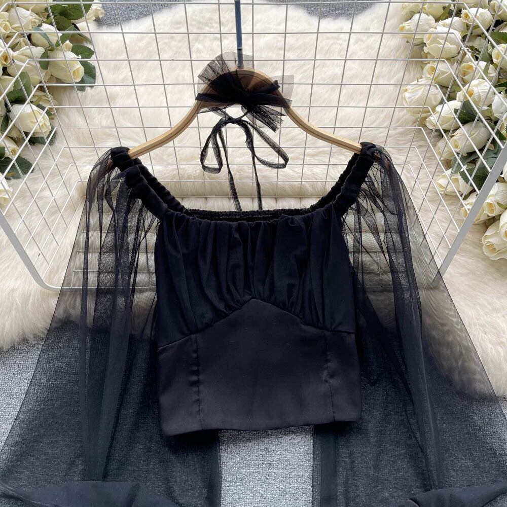 フランスのデザインセンスニッチショートシャツレディース夏新作メッシュパフスリーブスプライシングワンショルダーシャツ サマー 夏物 lyxaj48535569441