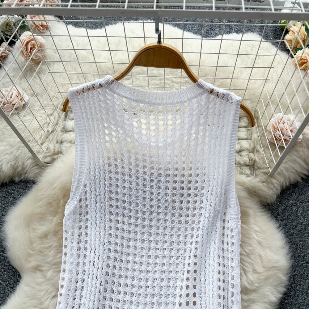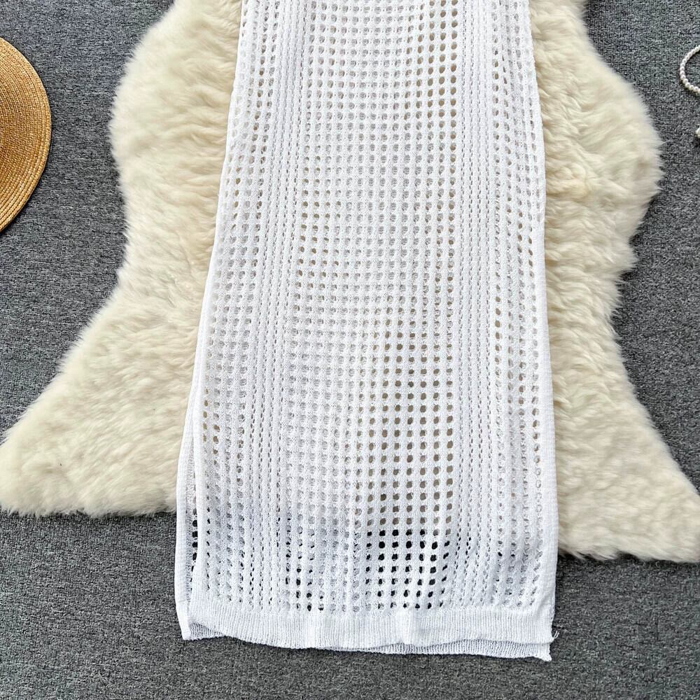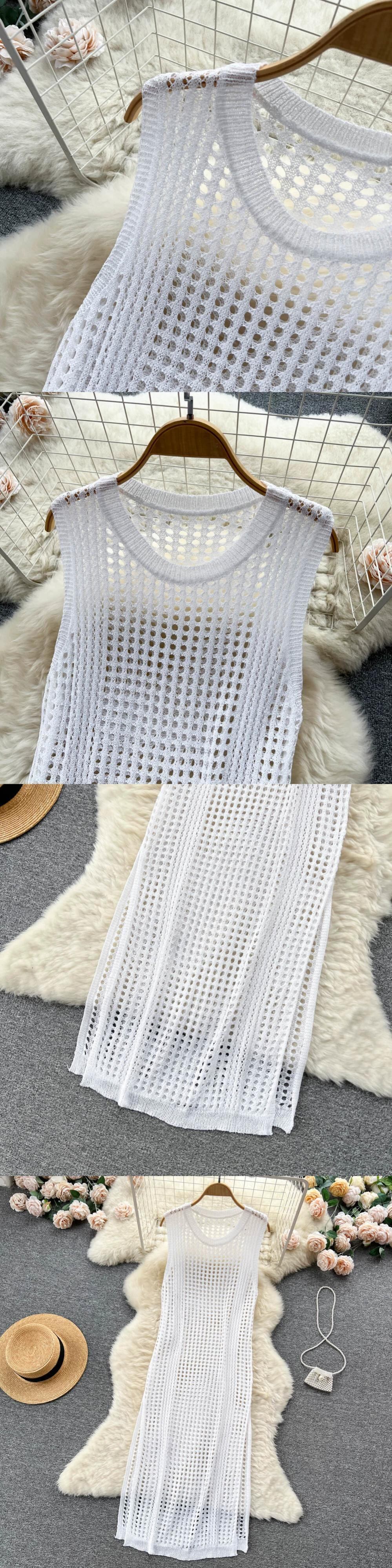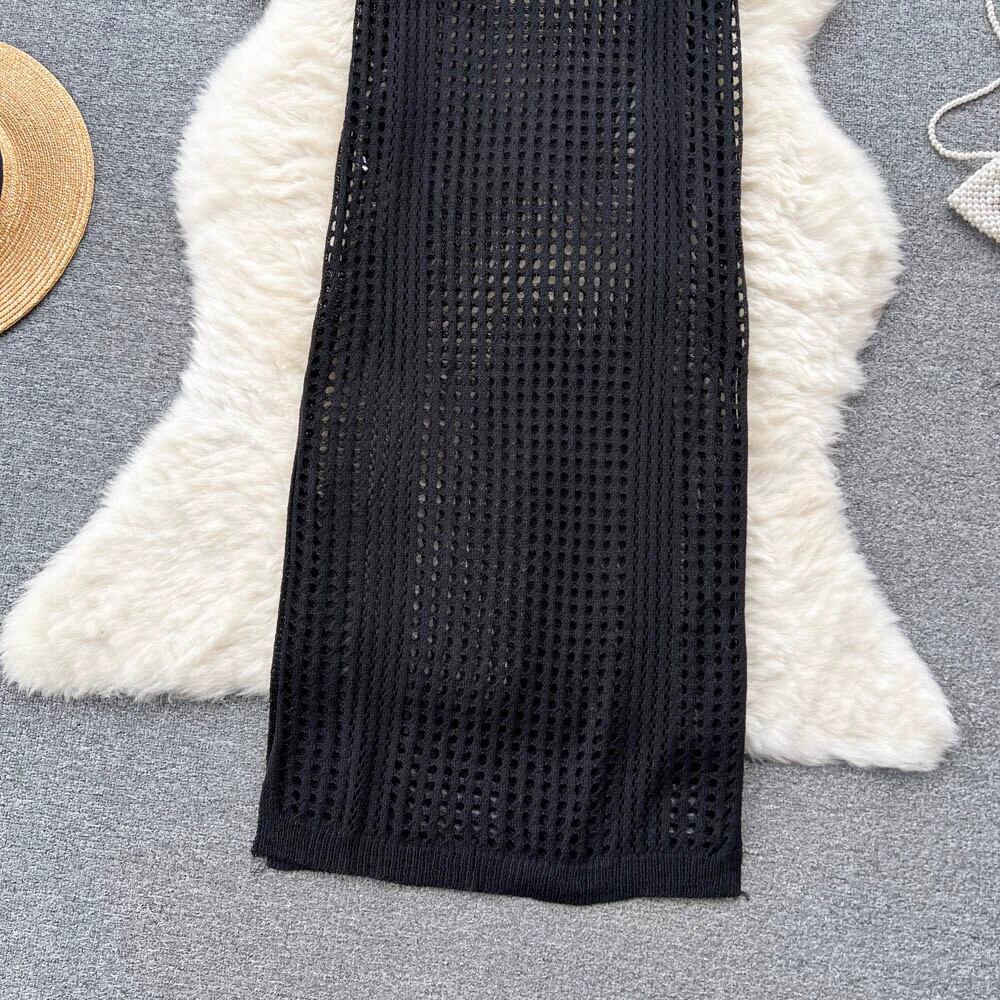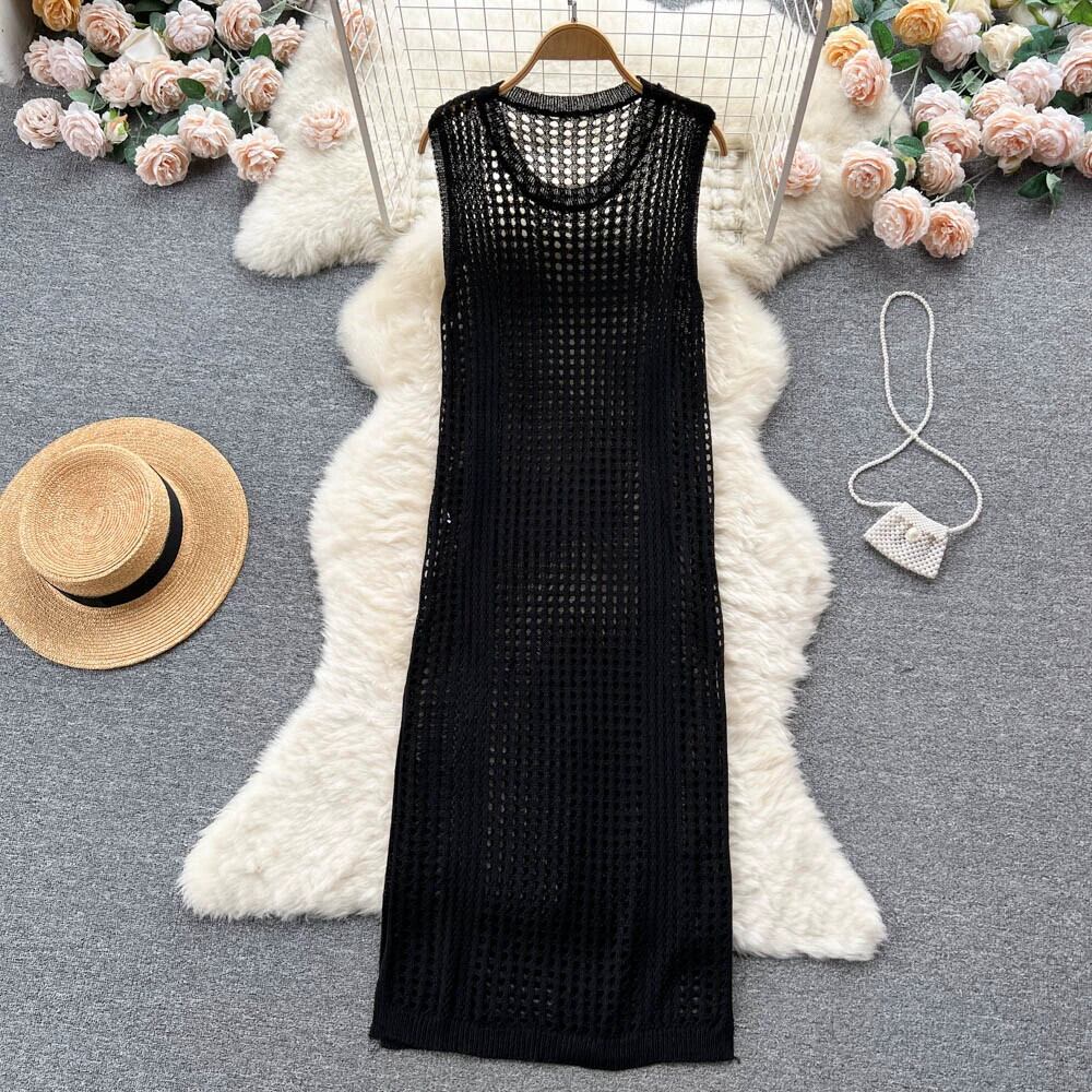 ボヘミアンホリデードレス女性の夏の新しい中空スリットノースリーブニットスカートとビーチスカート サマー 夏物 lyxaj95269210888
