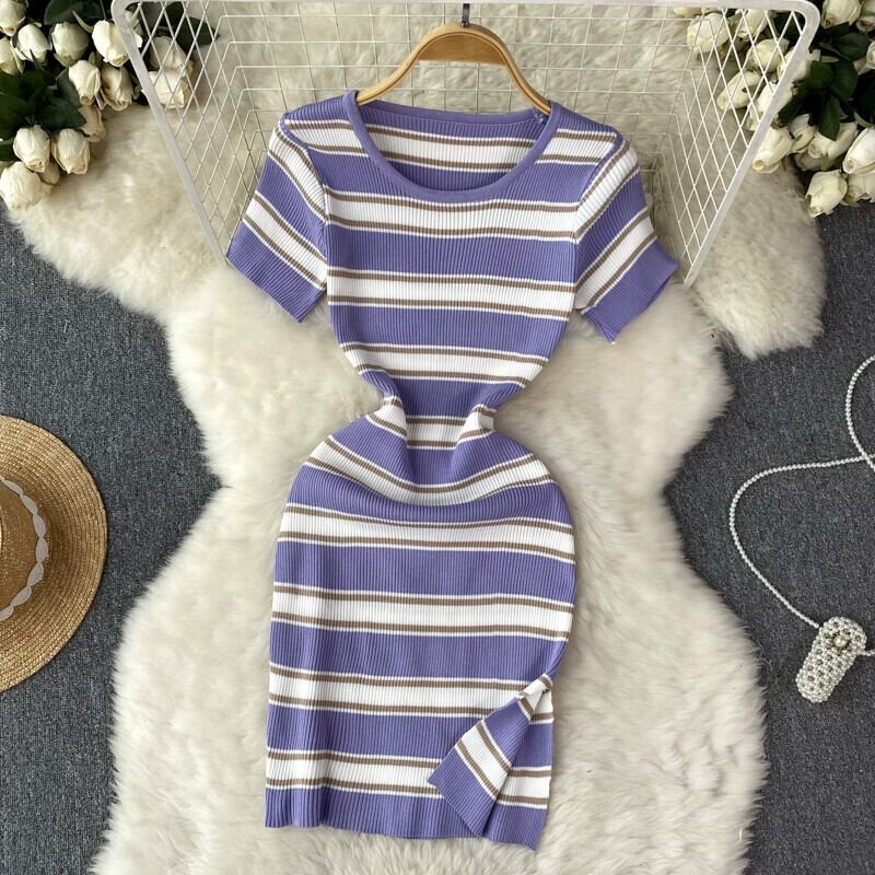 純粋な欲望スタイルストライプニットドレス女性スリム夏の新しいセクシーな気質スリムバッグヒップショートスカート サマー 夏物 lyxaj49934974975