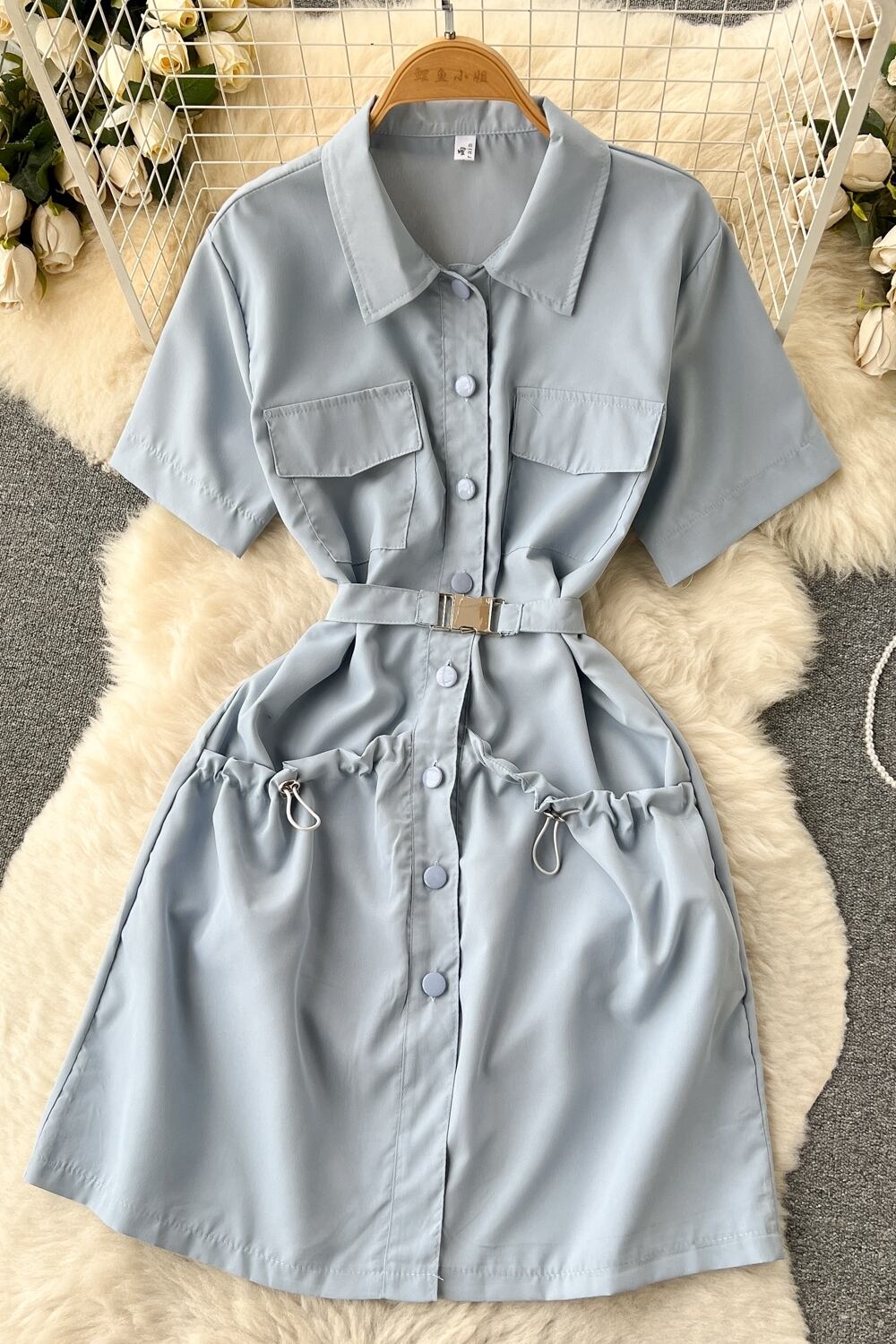 夏の新デザインセンス無地シャツドレス女性ニッチウエスト痩身ツーリングスタイル A ラインショートスカートトレンディ サマー 夏物 Aライン ソリッドカラー lyxaj19773580039