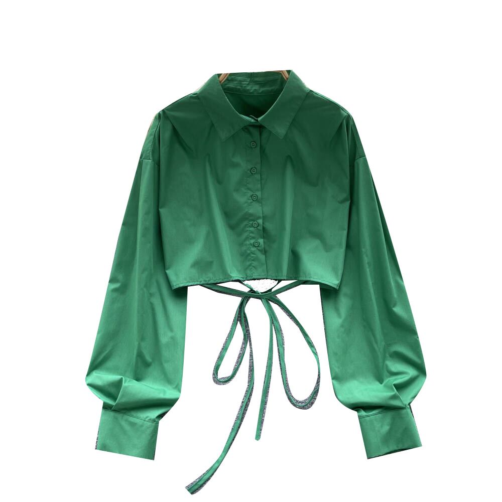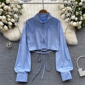 2023 春デザインセンスショートラペル巾着ネクタイ長袖シャツ女性スタイルシックな無地シックなシャツ ロング スプリング 春物 ソリッドカラー lyxaj35399355946